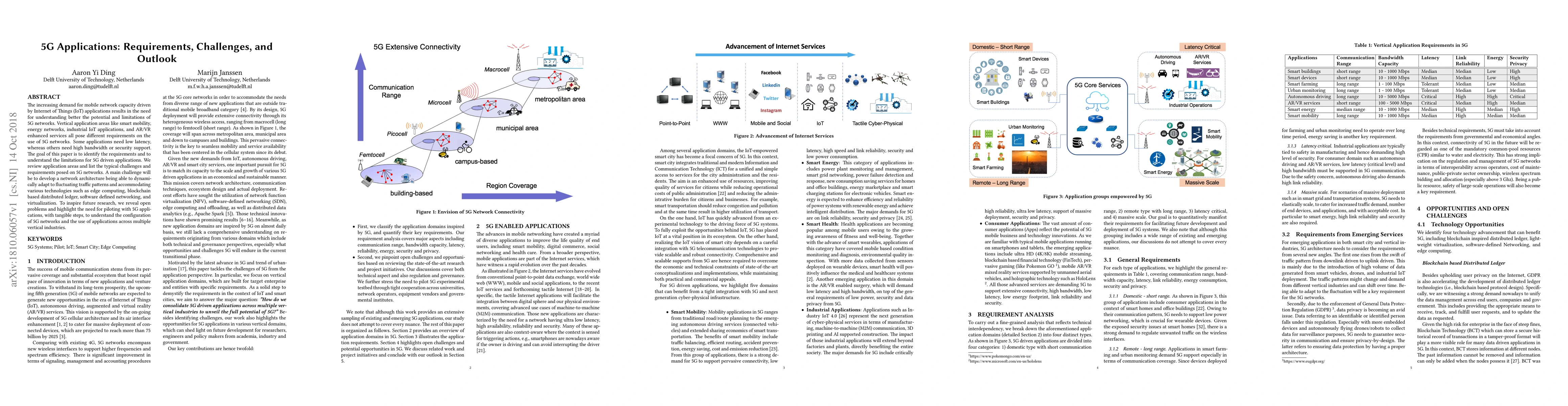 The increasing demand for mobile network capacity driven by Internet of Things (IoT) applications results in the need for understanding better the potential and limitations of 5G networks. Vertical application areas like smart mobility, energy networks, industrial IoT applications, and AR/VR enhanced services all pose different requirements on the use of 5G networks. Some applications need low latency, whereas others need high bandwidth or security support. The goal of this paper is to identify the requirements and to understand the limitations for 5G driven applications. We review application areas and list the typical challenges and requirements posed on 5G networks. A main challenge will be to develop a network architecture being able to dynamically adapt to fluctuating traffic patterns and accommodating various technologies such as edge computing, blockchain based distributed ledger, software defined networking, and virtualization. To inspire future research, we reveal open problems and highlight the need for piloting with 5G applications, with tangible steps, to understand the configuration of 5G networks and the use of applications across multiple vertical industries.