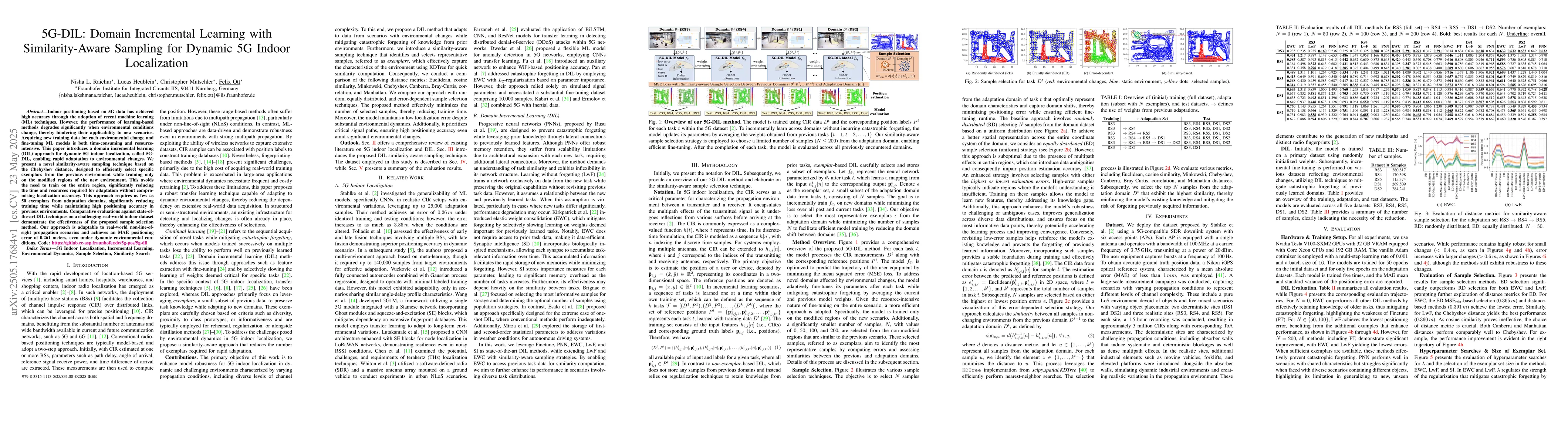 The paper presents a novel similarity-aware sampling technique for domain incremental learning in 5G indoor localization, which efficiently selects exemplars from previous environments using Chebyshev distance, reducing the need for extensive retraining.