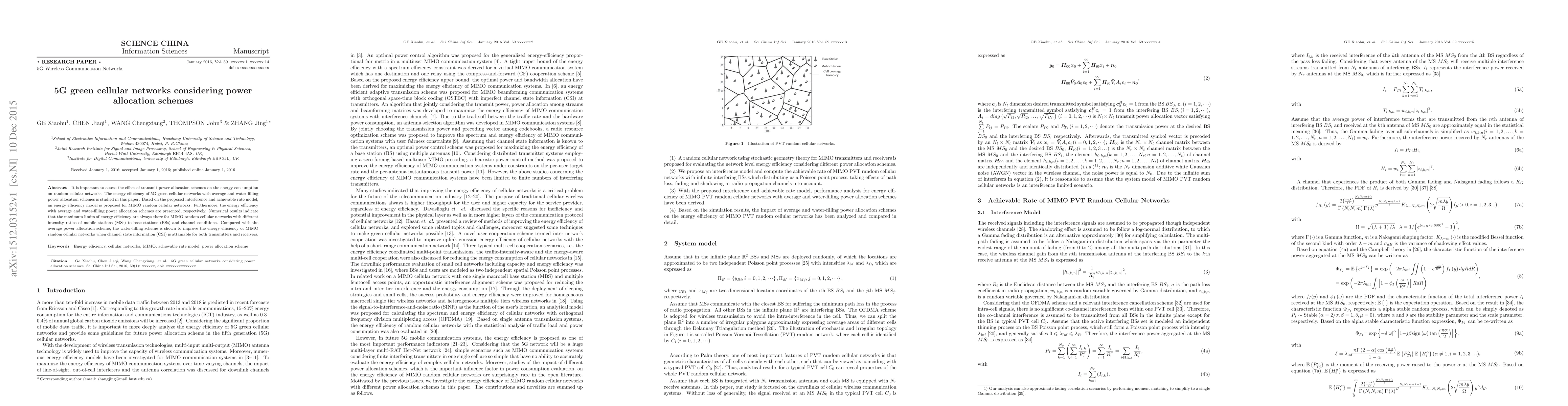 This paper evaluates the energy efficiency of 5G green cellular networks using average and water-filling power allocation schemes. It proposes an energy efficiency model for MIMO random cellular networks and demonstrates that the water-filling scheme improves efficiency when channel state information is available, compared to the average power allocation scheme.