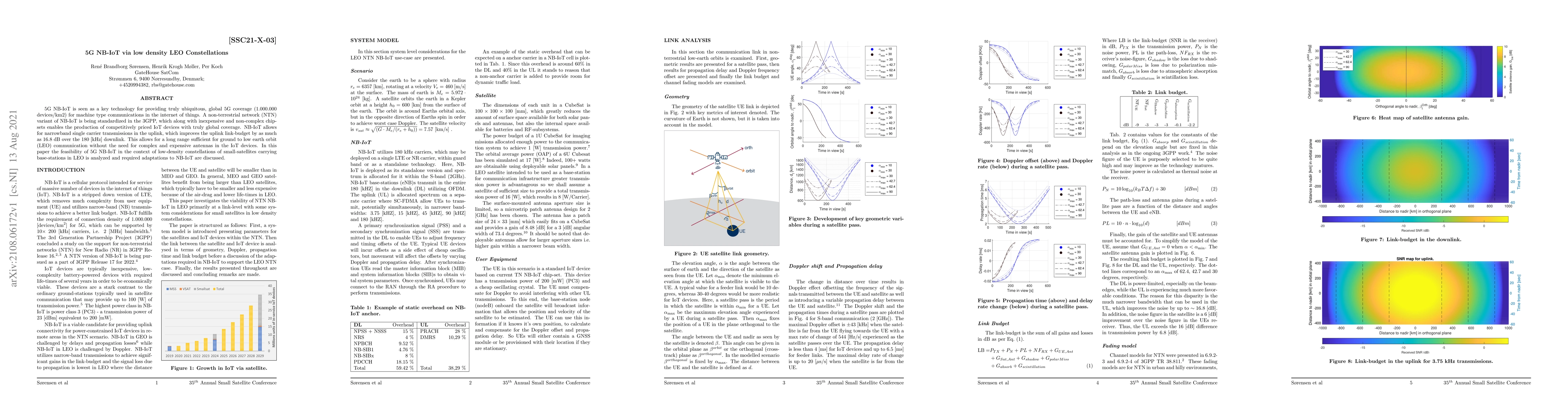This paper analyzes the feasibility of deploying 5G Narrowband Internet of Things (NB-IoT) via low-density constellations of low earth orbit (LEO) satellites, discussing necessary adaptations to achieve global coverage for machine type communications in the internet of things. It highlights the benefits of NB-IoT's narrowband uplink transmissions for long-range communication with low-cost IoT devices.