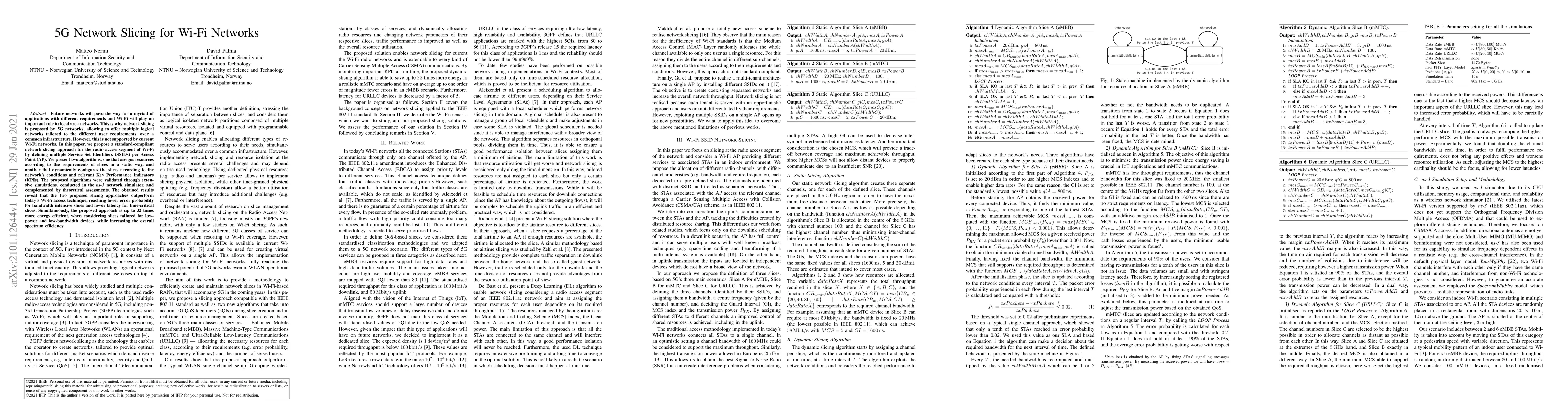 This paper proposes a standard-compliant network slicing approach for Wi-Fi networks using multiple Service Set Identifiers per Access Point, introducing algorithms for static and dynamic resource allocation. Simulation results show improved performance in error probability, latency, and energy efficiency compared to current Wi-Fi access techniques.