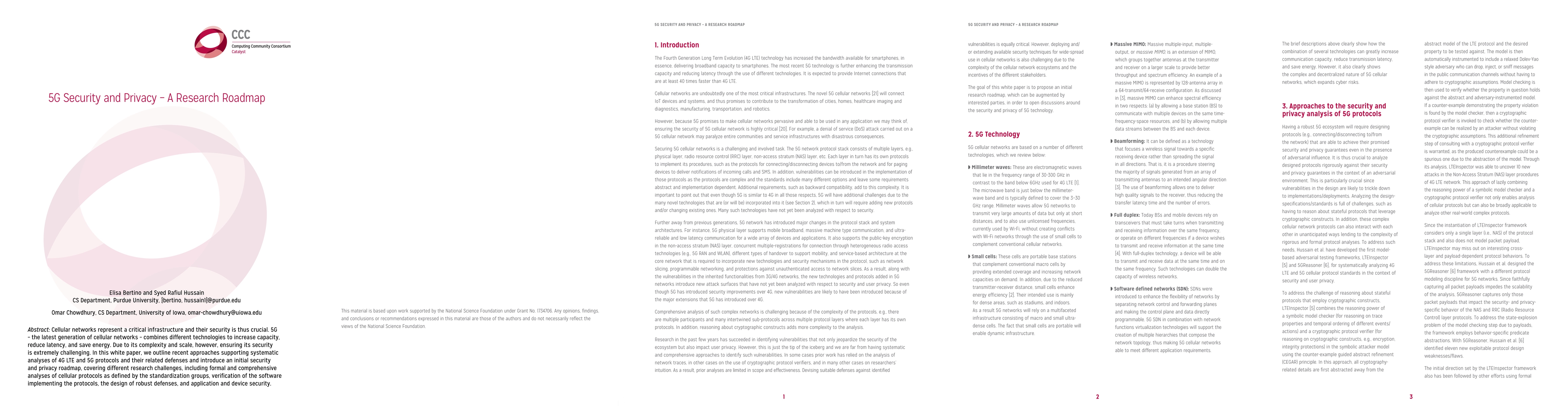 This paper discusses the security challenges of 5G networks, emphasizing the need for systematic analysis of 4G LTE and 5G protocols. It proposes a research roadmap focusing on formal protocol analysis, software verification, robust defense design, and securing applications and devices.