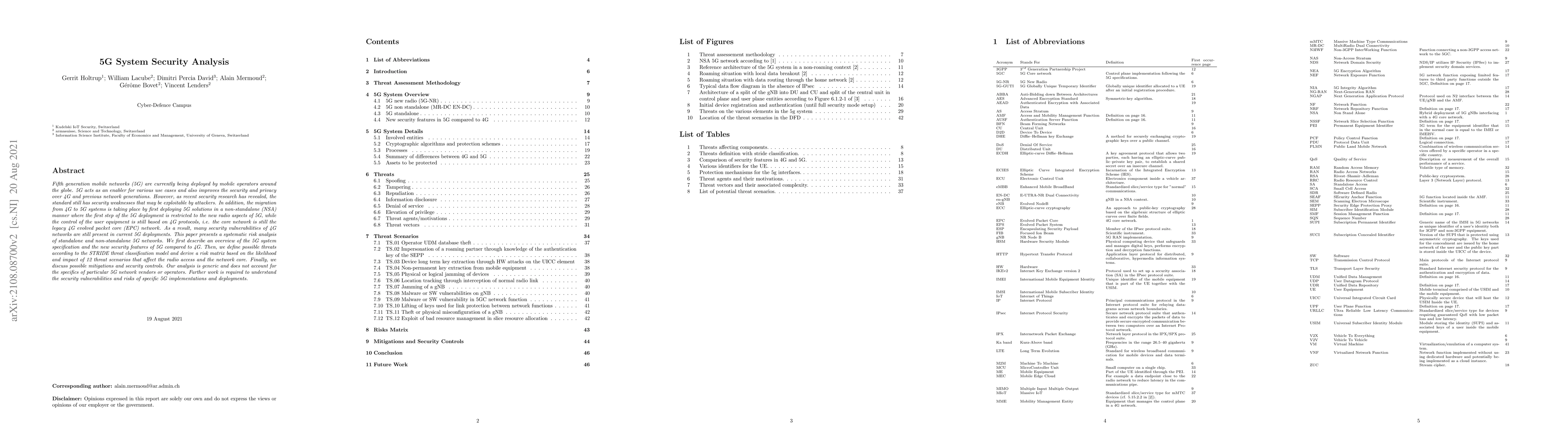 This paper conducts a systematic risk analysis of both standalone and non-standalone 5G networks, identifying security vulnerabilities and deriving a risk matrix based on threat scenarios. It discusses potential mitigations and emphasizes the need for further research on specific 5G implementations.
