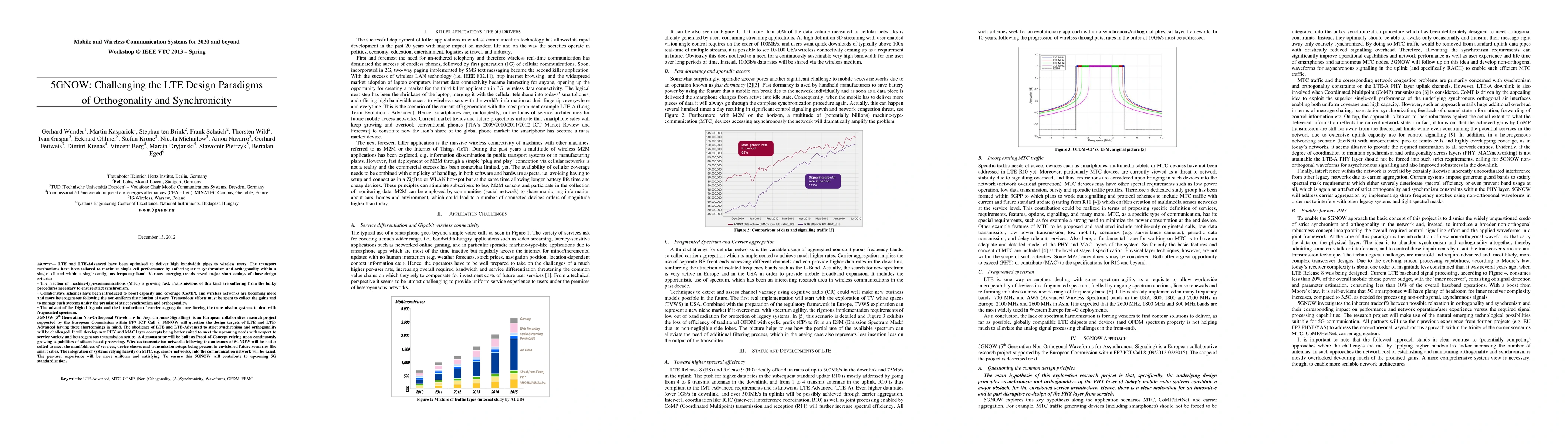 LTE and LTE-Advanced have been optimized to deliver high bandwidth pipes to wireless users. The transport mechanisms have been tailored to maximize single cell performance by enforcing strict synchronism and orthogonality within a single cell and within a single contiguous frequency band. Various emerging trends reveal major shortcomings of those design criteria: 1) The fraction of machine-type-communications (MTC) is growing fast. Transmissions of this kind are suffering from the bulky procedures necessary to ensure strict synchronism. 2) Collaborative schemes have been introduced to boost capacity and coverage (CoMP), and wireless networks are becoming more and more heterogeneous following the non-uniform distribution of users. Tremendous efforts must be spent to collect the gains and to manage such systems under the premise of strict synchronism and orthogonality. 3) The advent of the Digital Agenda and the introduction of carrier aggregation are forcing the transmission systems to deal with fragmented spectrum. 5GNOW is an European research project supported by the European Commission within FP7 ICT Call 8. It will question the design targets of LTE and LTE-Advanced having these shortcomings in mind and the obedience to strict synchronism and orthogonality will be challenged. It will develop new PHY and MAC layer concepts being better suited to meet the upcoming needs with respect to service variety and heterogeneous transmission setups. Wireless transmission networks following the outcomes of 5GNOW will be better suited to meet the manifoldness of services, device classes and transmission setups present in envisioned future scenarios like smart cities. The integration of systems relying heavily on MTC into the communication network will be eased. The per-user experience will be more uniform and satisfying. To ensure this 5GNOW will contribute to upcoming 5G standardization.