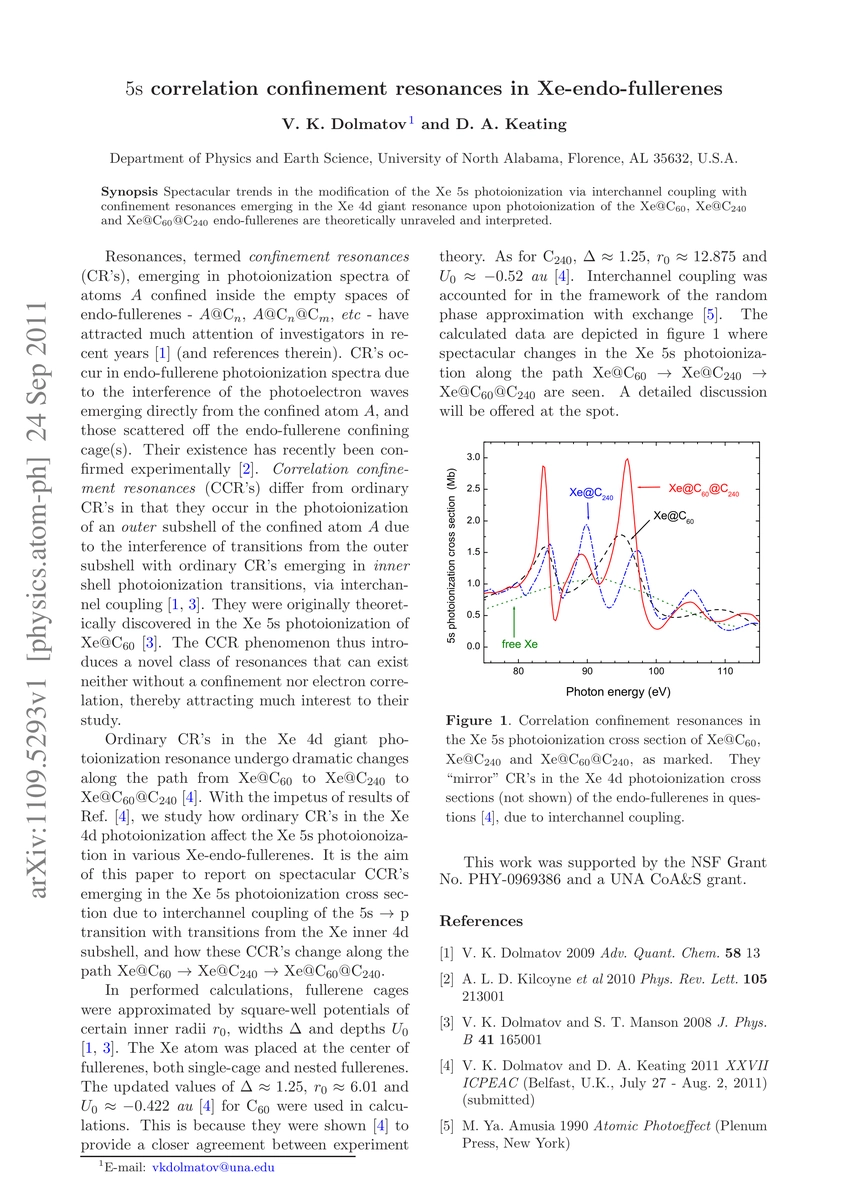 The research used a theoretical framework to study the Xe 5s photoionization via interchannel coupling with confinement resonances in Xe-endo-fullerenes.
