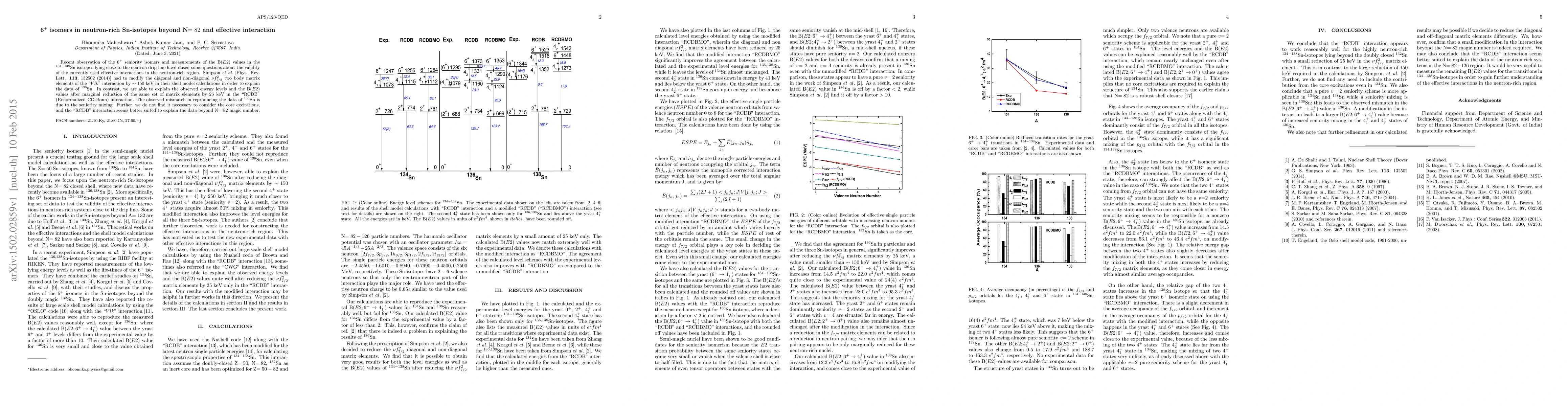 This paper investigates the discrepancies in effective interactions used to describe 6$^+$ isomers in neutron-rich Sn isotopes beyond N=82. The authors find that the "RCDB" interaction requires only a minor adjustment of 25 keV to match observed energy levels and B$(E2)$ values, contrasting with the larger modifications needed by another interaction.