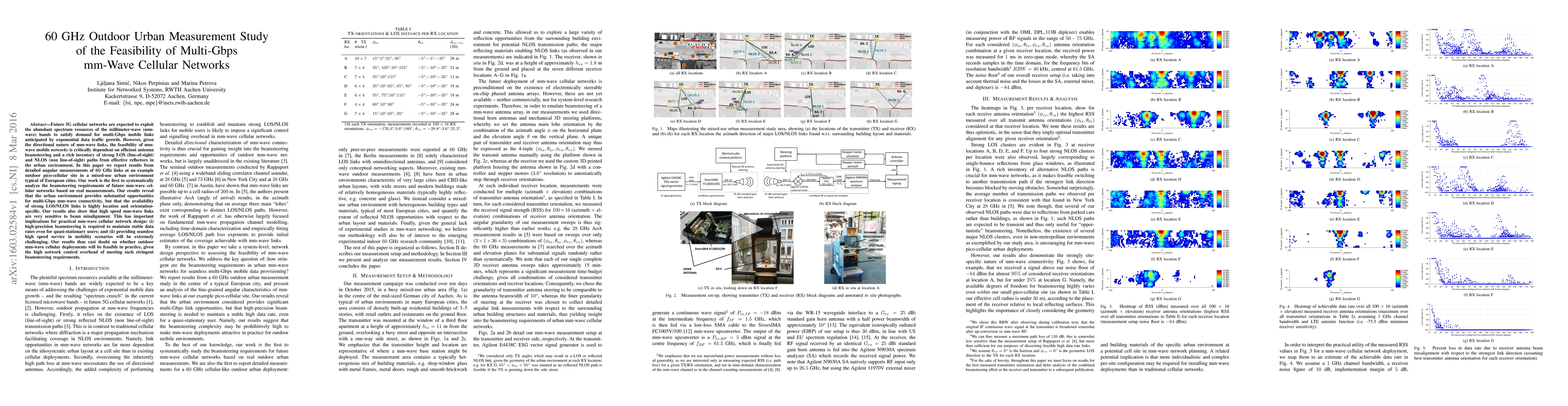 This paper reports on 60 GHz outdoor urban measurements to assess the feasibility of multi-Gbps mm-wave cellular networks, revealing substantial opportunities for connectivity but highlighting the need for high-precision beamsteering due to the location-specific availability of strong LOS/NLOS links and the sensitivity of high-speed links to beam misalignment.