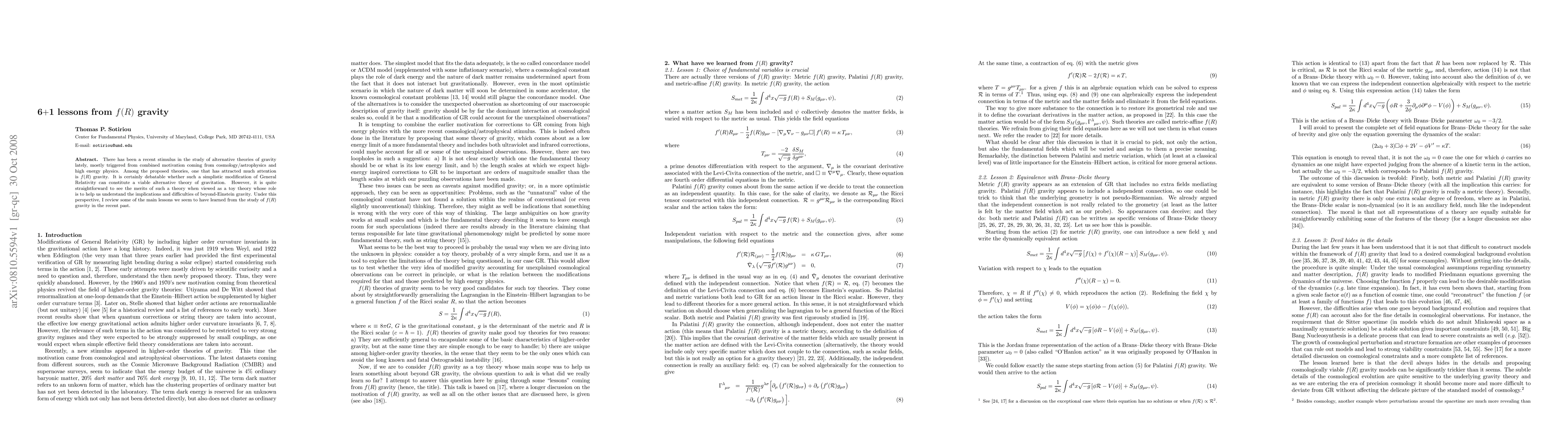 This paper reviews six key lessons learned from studying f(R) gravity, highlighting its role as a simplified model to explore implications and challenges of theories beyond General Relativity, driven by interests in cosmology, astrophysics, and high energy physics.