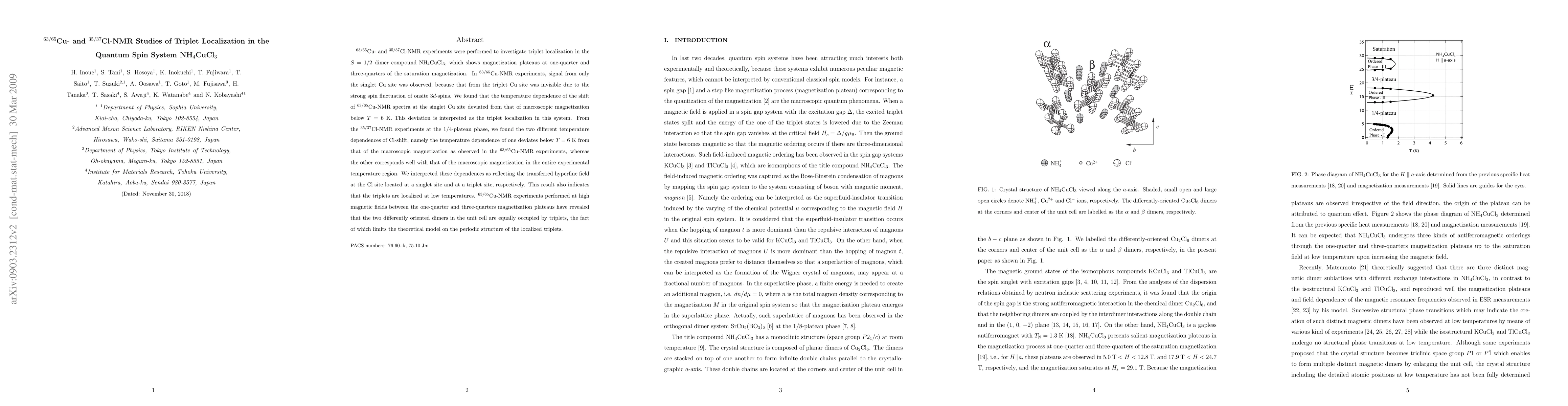 The research utilized ^{63/65}Cu- and ^{35/37}Cl-NMR experiments to study triplet localization in the quantum spin system NH$_4$CuCl$_3$. Key findings include the invisibility of triplet Cu site signals due to strong spin fluctuations, triplet localization below 6K indicated by Cu-NMR shift deviation, and distinct Cl-NMR shift behaviors reflecting localized triplets at low temperatures. High-field Cu-NMR revealed equal occupation of differently oriented dimers by triplets, constraining theoretical models of localized triplet periodic structures.