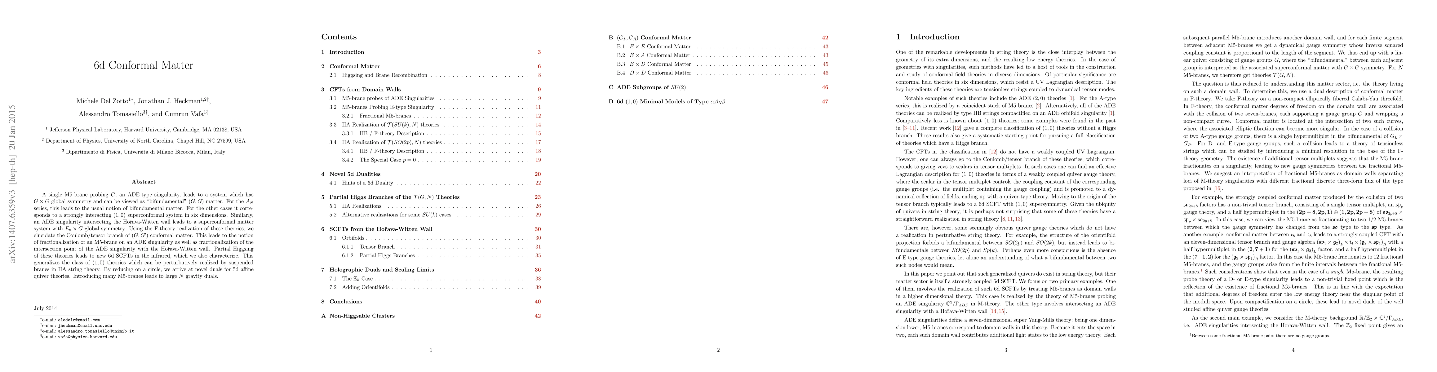 Researchers describe a new type of conformal matter in 6 dimensions, emerging from the intersection of an M5-brane with an ADE-type singularity or the Horava-Witten wall.