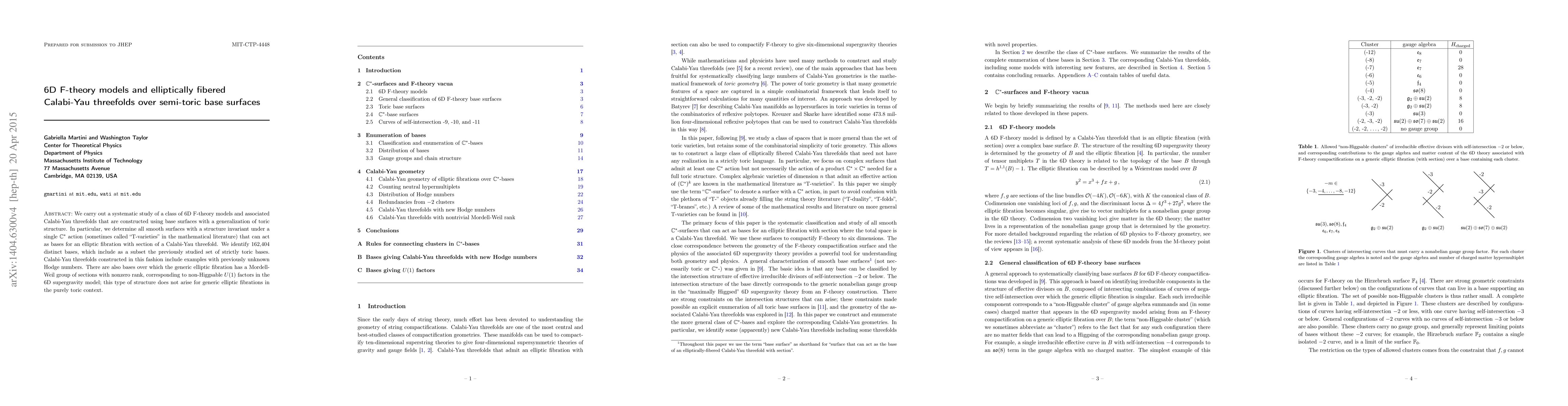 We carry out a systematic study of a class of 6D F-theory models and associated Calabi-Yau threefolds that are constructed using base surfaces with a generalization of toric structure. In particular, we determine all smooth surfaces with a structure invariant under a single C^* action (sometimes called "T-varieties" in the mathematical literature) that can act as bases for an elliptic fibration with section of a Calabi-Yau threefold. We identify 162,404 distinct bases, which include as a subset the previously studied set of strictly toric bases. Calabi-Yau threefolds constructed in this fashion include examples with previously unknown Hodge numbers. There are also bases over which the generic elliptic fibration has a Mordell-Weil group of sections with nonzero rank, corresponding to non-Higgsable U(1) factors in the 6D supergravity model; this type of structure does not arise for generic elliptic fibrations in the purely toric context.
