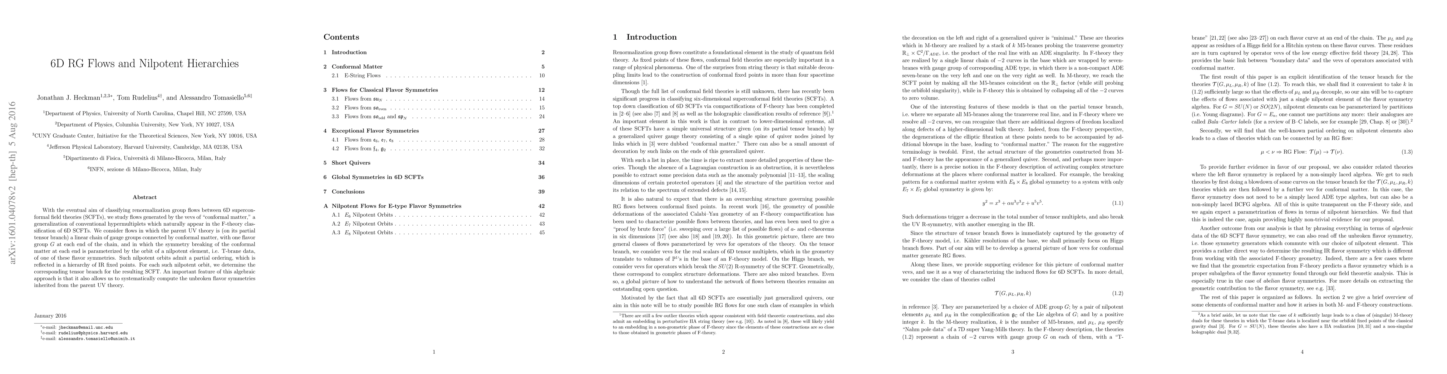 This paper classifies 6D superconformal field theory (SCFT) renormalization group flows driven by "conformal matter," revealing a hierarchy of infrared fixed points parameterized by nilpotent orbits. It also systematically computes the inherited flavor symmetries from the parent UV theory.
