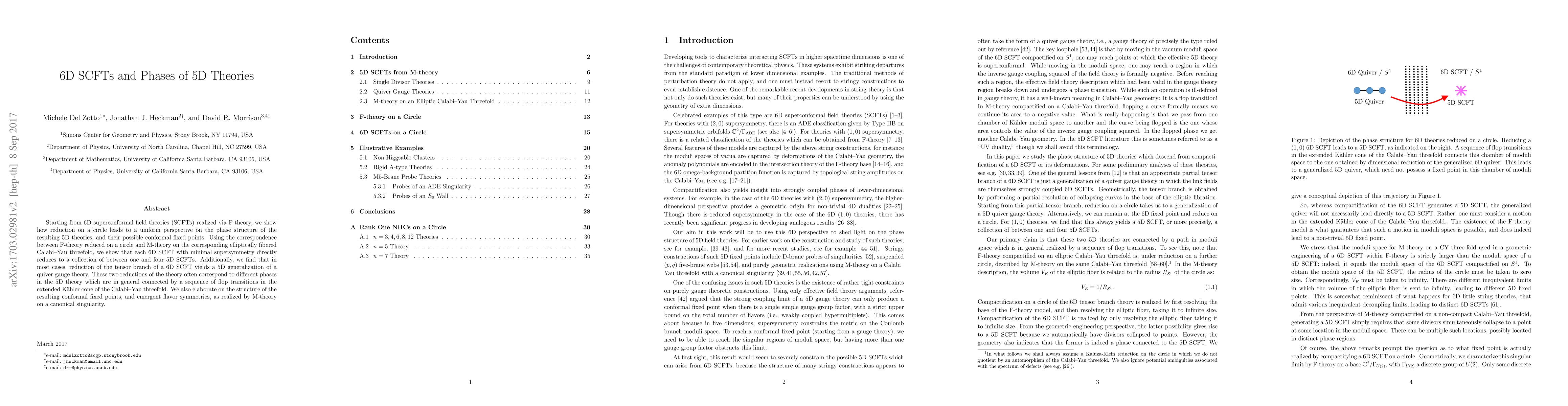 This paper investigates the phase structure of 5D theories derived from 6D superconformal field theories (SCFTs) via F-theory. It demonstrates that reduction on a circle leads to multiple 5D SCFTs, often revealing different phases connected by flop transitions, and discusses the conformal fixed points and emergent flavor symmetries.