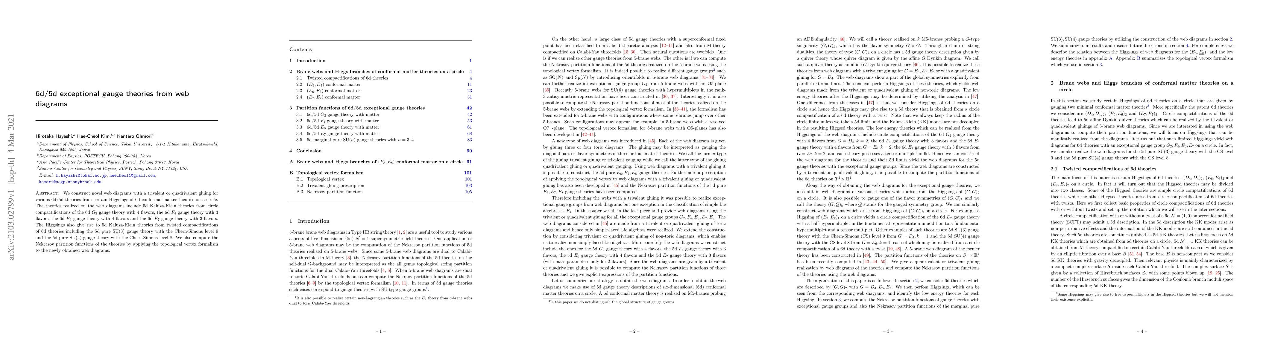 This paper introduces web diagrams to construct 6d/5d exceptional gauge theories from specific Higgsings of 6d conformal matter theories. It details the realization of various 5d Kaluza-Klein theories and computes their Nekrasov partition functions using the topological vertex formalism.