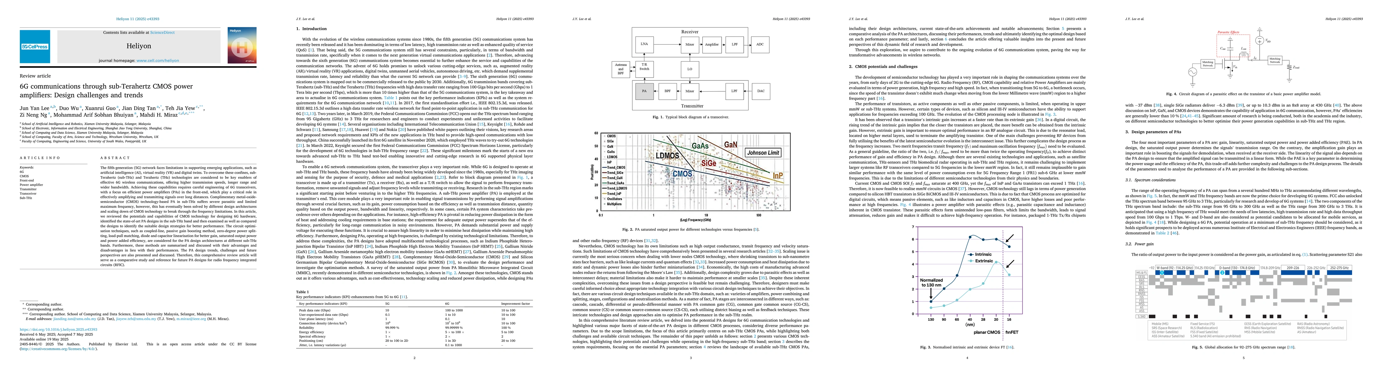 This work stands out by offering a comprehensive review of CMOS-based sub-THz PAs, focusing on optimization techniques and design trends, which is essential for the development of efficient 6G transceivers.