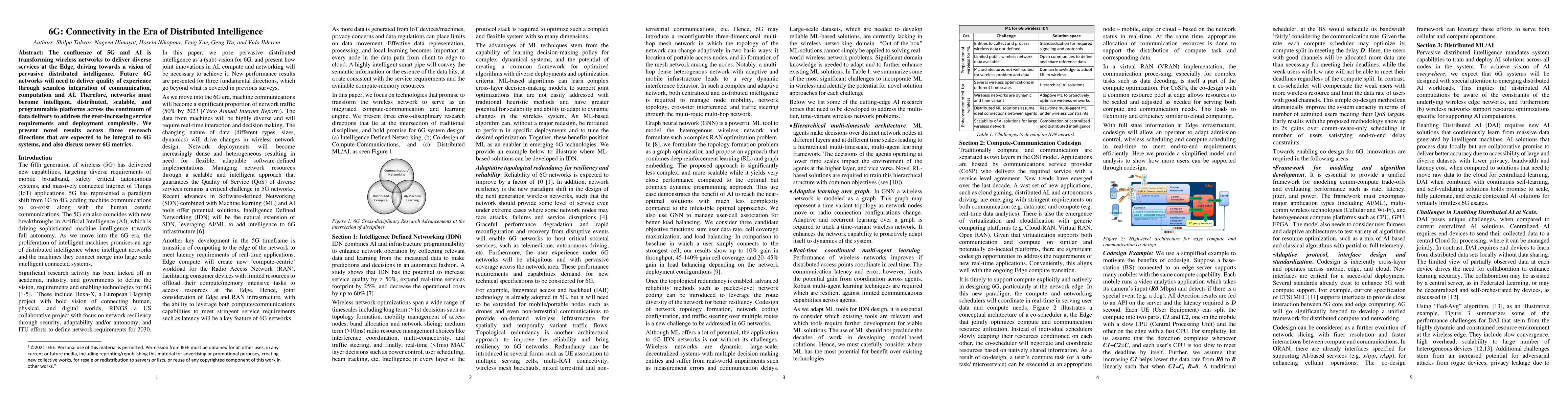 The confluence of 5G and AI is transforming wireless networks to deliver diverse services at the Edge, driving towards a vision of pervasive distributed intelligence. Future 6G networks will need to deliver quality of experience through seamless integration of communication, computation and AI. Therefore, networks must become intelligent, distributed, scalable, and programmable platforms across the continuum of data delivery to address the ever-increasing service requirements and deployment complexity. We present novel results across three research directions that are expected to be integral to 6G systems and also discuss newer 6G metrics.