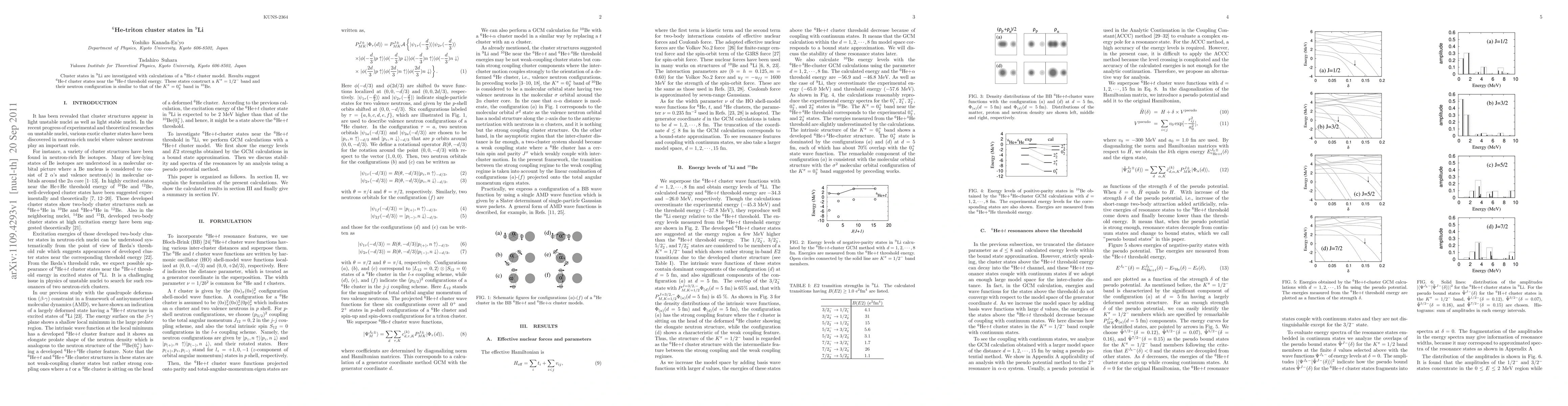 Researchers investigated $^6$He-triton cluster states in $^9$Li using a $^6$He-$t$ cluster model, finding states near the threshold energy that form a $K^ heta=1/2^-$ band similar to those in $^{10}$Be.