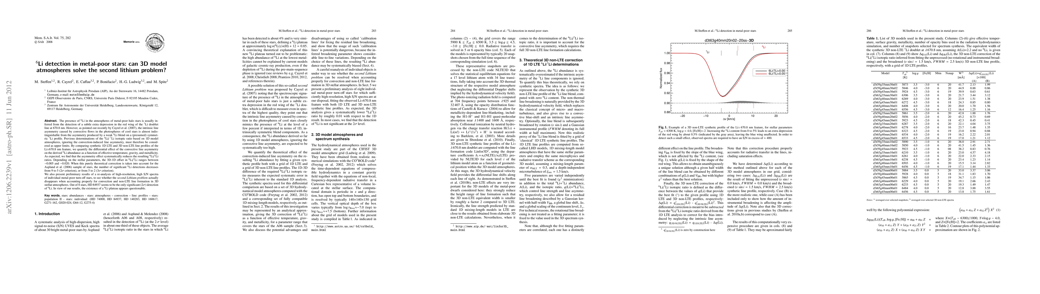 This paper investigates the detection of 6Li in metal-poor stars using 3D model atmospheres to address the "second lithium problem." It finds that 3D non-LTE models reduce inferred 6Li/7Li ratios, decreasing significant 6Li detections from 9 to 5 (2 sigma) and from 5 to 2 (3 sigma). Preliminary re-analysis suggests only HD84937 shows a significant 6Li detection, questioning the existence of a 6Li plateau.