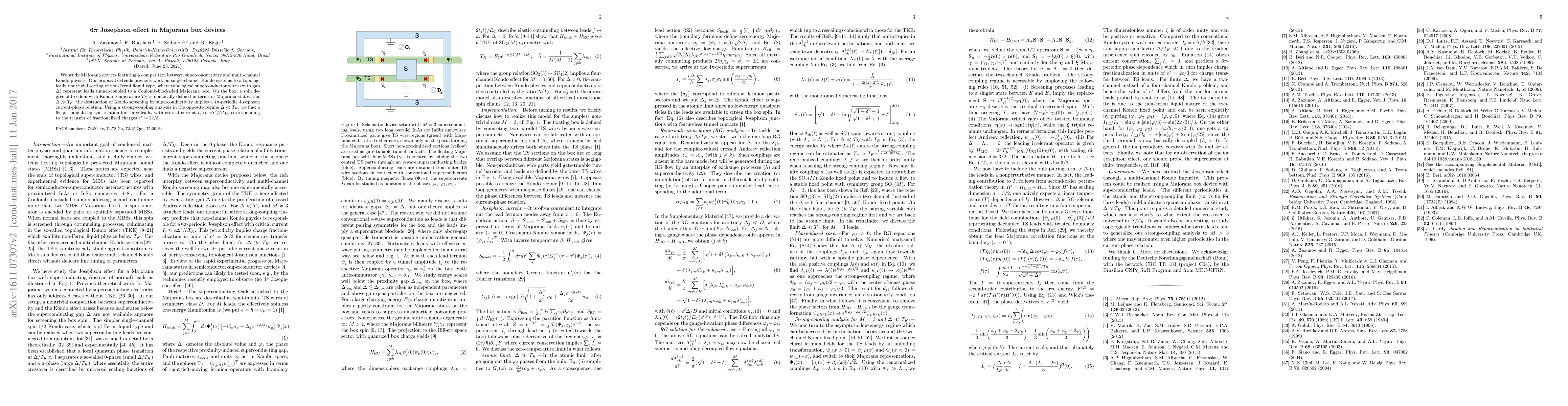 We study Majorana devices featuring a competition between superconductivity and multi-channel Kondo physics. Our proposal extends previous work on single-channel Kondo systems to a topologically nontrivial setting of non-Fermi liquid type, where topological superconductor wires (with gap $\Delta$) represent leads tunnel-coupled to a Coulomb-blockaded Majorana box. On the box, a spin degree of freedom with Kondo temperature $T_K$ is nonlocally defined in terms of Majorana states. For $\Delta\gg T_K$, the destruction of Kondo screening by superconductivity implies a $4\pi$-periodic Josephson current-phase relation. Using a strong-coupling analysis in the opposite regime $\Delta \ll T_K$, we find a $6\pi$-periodic Josephson relation for three leads, with critical current $I_c\approx e\Delta^2/ \hbar T_K$, corresponding to the transfer of fractionalized charges $e^*=2e/3$.