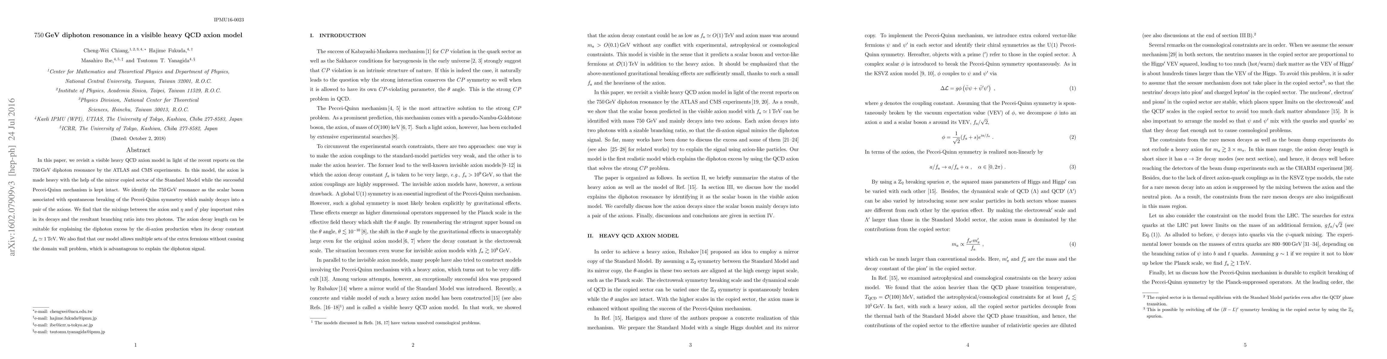 This paper explores a visible heavy QCD axion model where the 750 GeV diphoton resonance is identified as a scalar boson resulting from the spontaneous breaking of Peccei-Quinn symmetry, primarily decaying into axion pairs. The model's axion, with a decay constant around 1 TeV, could explain the diphoton excess, and it avoids the domain wall problem through extra fermions.
