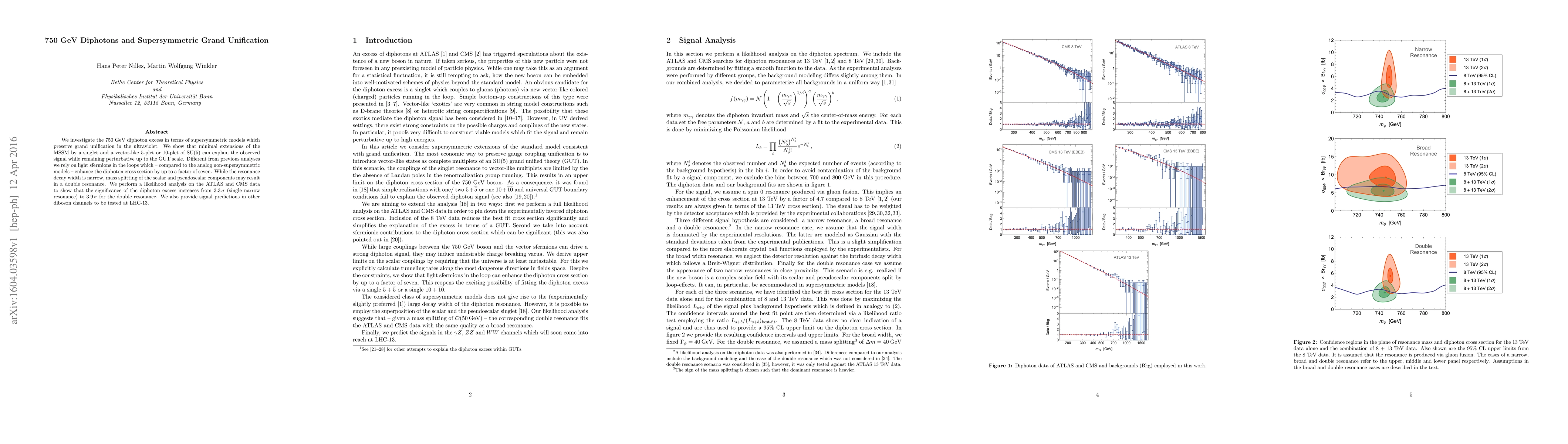 We investigate the 750 GeV diphoton excess in terms of supersymmetric models which preserve grand unification in the ultraviolet. We show that minimal extensions of the MSSM by a singlet and a vector-like 5-plet or 10-plet of SU(5) can explain the observed signal while remaining perturbative up to the GUT scale. Different from previous analyses we rely on light sfermions in the loops which - compared to the analog non-supersymmetric models - enhance the diphoton cross section by up to a factor of seven. While the resonance decay width is narrow, mass splitting of the scalar and pseudoscalar components may result in a double resonance. We perform a likelihood analysis on the ATLAS and CMS data to show that the significance of the diphoton excess increases from 3.3 sigma (single narrow resonance) to 3.9 sigma for the double resonance. We also provide signal predictions in other diboson channels to be tested at LHC-13.
