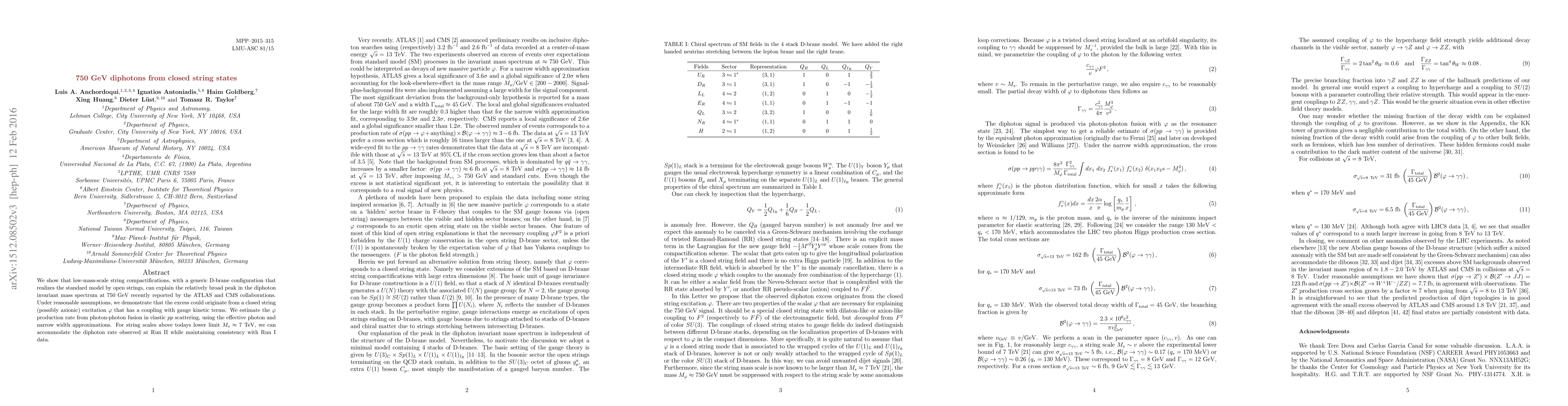 We show that low-mass-scale string compactifications, with a generic D-brane configuration that realizes the standard model by open strings, can explain the relatively broad peak in the diphoton invariant mass spectrum at 750 GeV recently reported by the ATLAS and CMS collaborations. Under reasonable assumptions, we demonstrate that the excess could originate from a closed string (possibly axionic) excitation \varphi that has a coupling with gauge kinetic terms. We estimate the \varphi production rate from photon-photon fusion in elastic pp scattering, using the effective photon and narrow width approximations. For string scales above todays lower limit M_s \approx 7 TeV, we can accommodate the diphoton rate observed at Run II while maintaining consistency with Run I data.