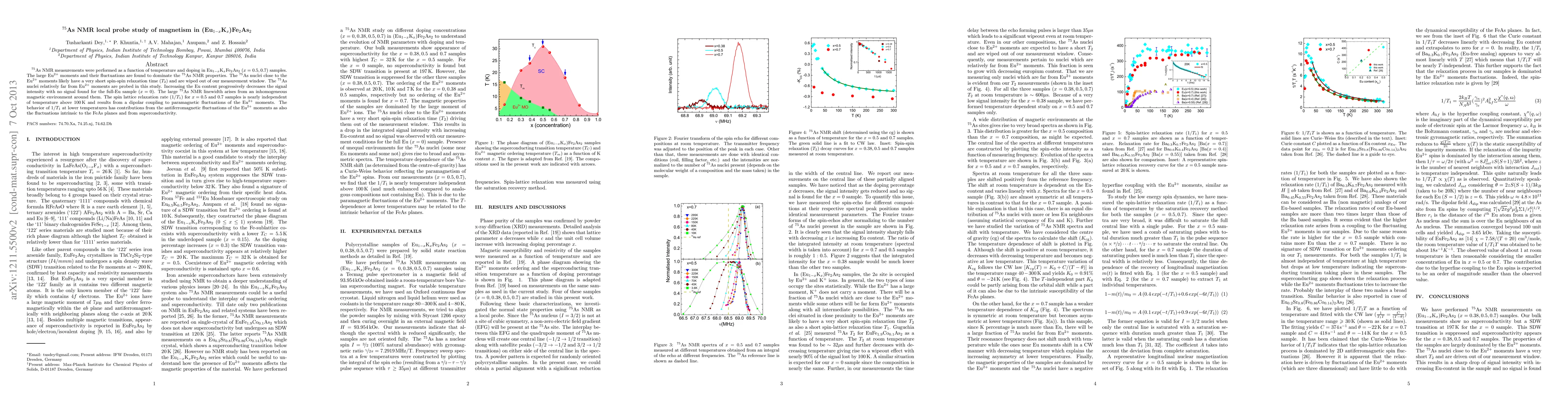 This study uses 75As NMR to investigate magnetism in (Eu1-xKx)Fe2As2 with varying Eu doping. The Eu2+ moments significantly influence the NMR properties, leading to a loss of signal from nuclei close to Eu2+ due to short relaxation times. The remaining nuclei far from Eu2+ show large linewidths due to inhomogeneous magnetic environments, with spin lattice relaxation rates in doped samples primarily influenced by Eu2+ paramagnetic fluctuations above 100K.