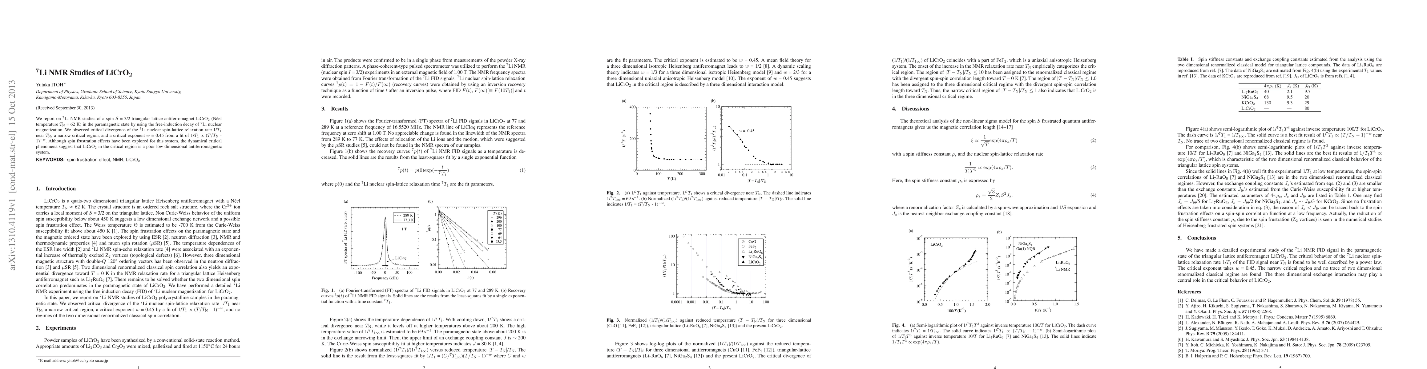 Researchers studied LiCrO2 using 7Li NMR to investigate its critical behavior near its Neel temperature (62 K), finding a narrow critical region with a critical exponent of w = 0.45.
