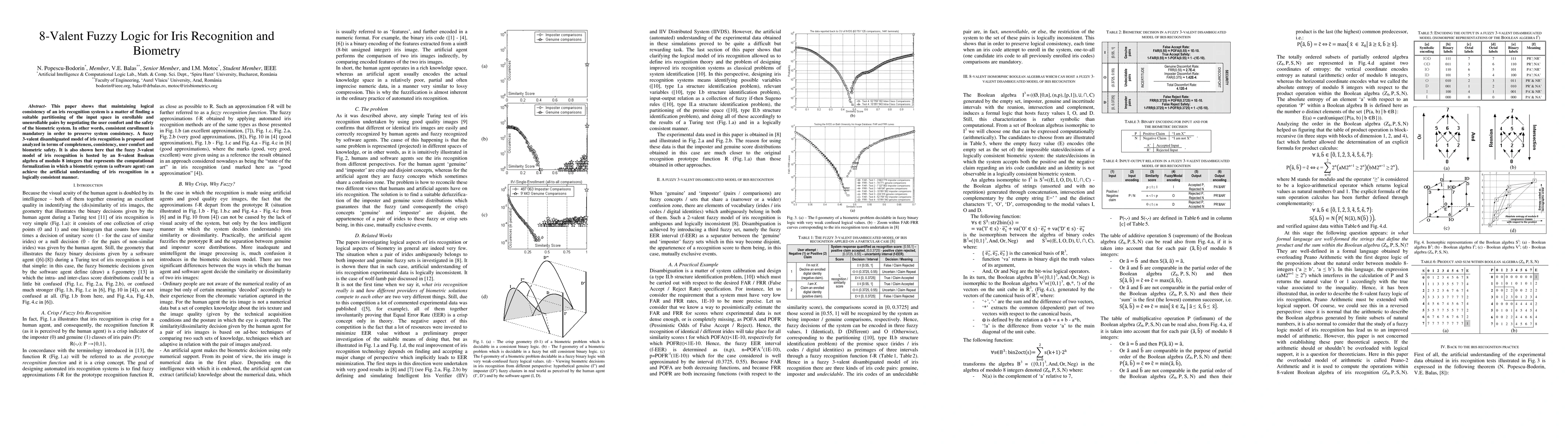 This paper proposes an 8-valent fuzzy logic model for iris recognition, emphasizing the importance of logical consistency through a suitable partitioning of the input space. The model aims to balance user comfort and biometric safety, achieving a consistent enrollment process within an 8-valued Boolean algebra framework.