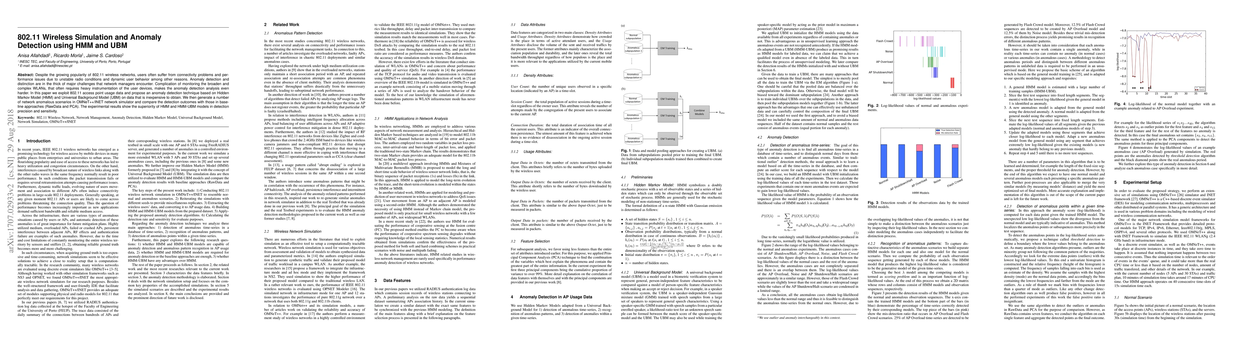 This paper proposes an anomaly detection technique for 802.11 wireless networks using Hidden Markov Models (HMM) and Universal Background Models (UBM) to analyze access point usage data. Experimental results in OMNeT++/INET simulator show that the HMM and HMM-UBM models outperform baseline approaches in detection precision and sensitivity.