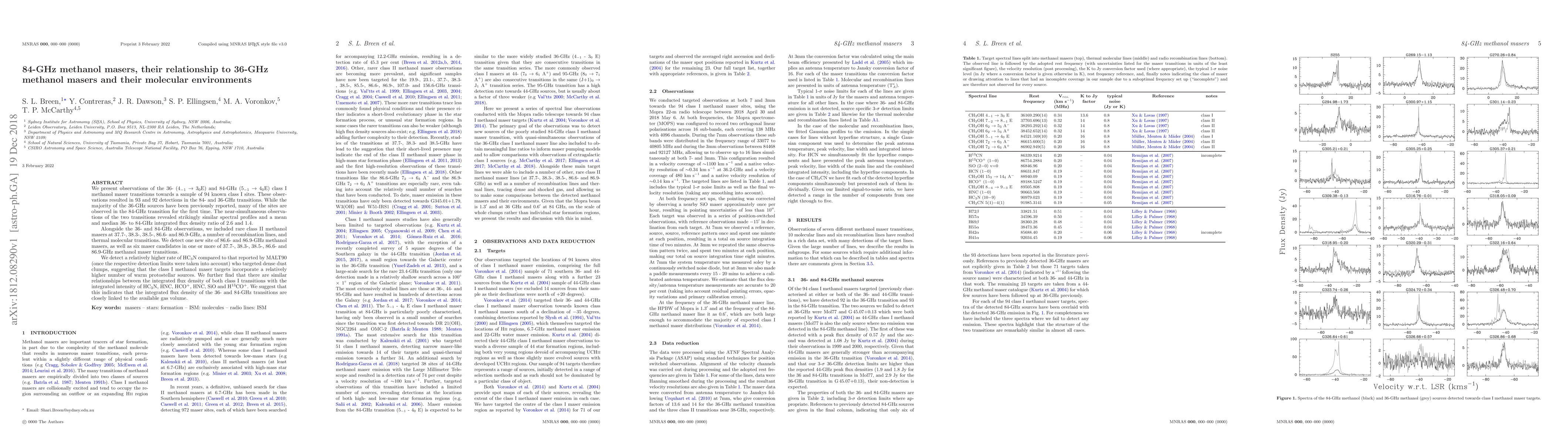 Researchers observed 84-GHz and 36-GHz methanol maser transitions at 94 known class I sites, detecting 93 and 92 sources respectively, with similar spectral profiles and a high integrated flux density ratio between the two transitions.