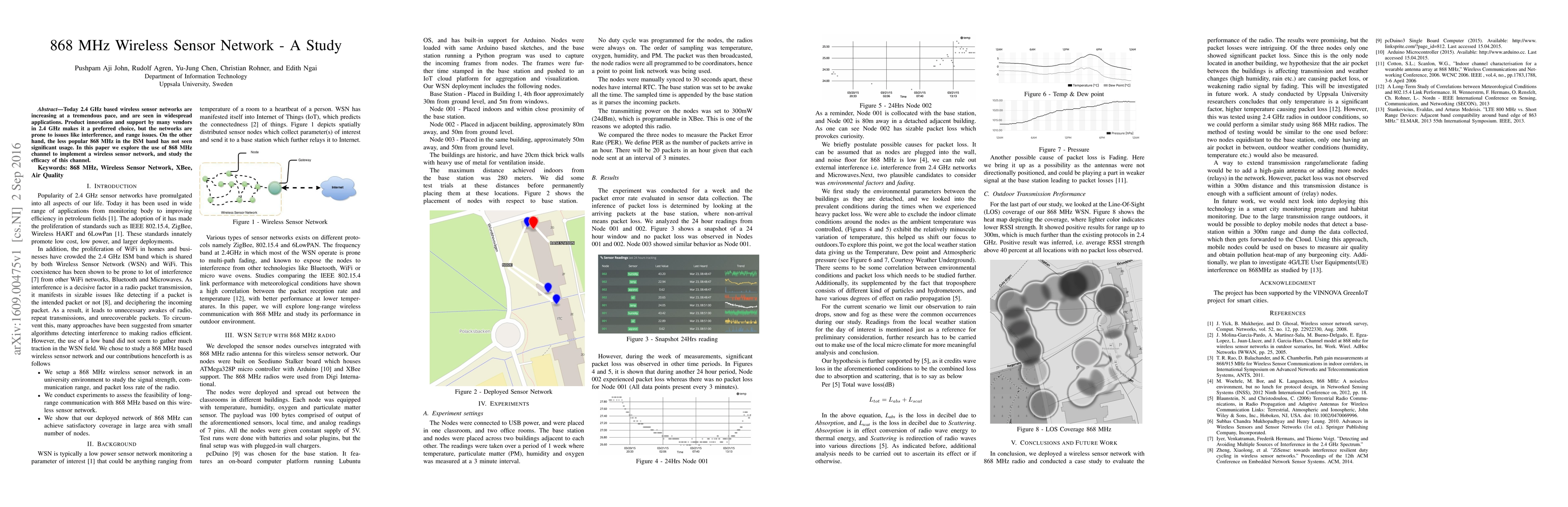 Today 2.4 GHz based wireless sensor networks are increasing at a tremendous pace, and are seen in widespread applications. Product innovation and support by many vendors in 2.4 GHz makes it a preferred choice, but the networks are prone to issues like interference, and range issues. On the other hand, the less popular 868 MHz in the ISM band has not seen significant usage. In this paper we explore the use of 868 MHz channel to implement a wireless sensor network, and study the efficacy of this channel