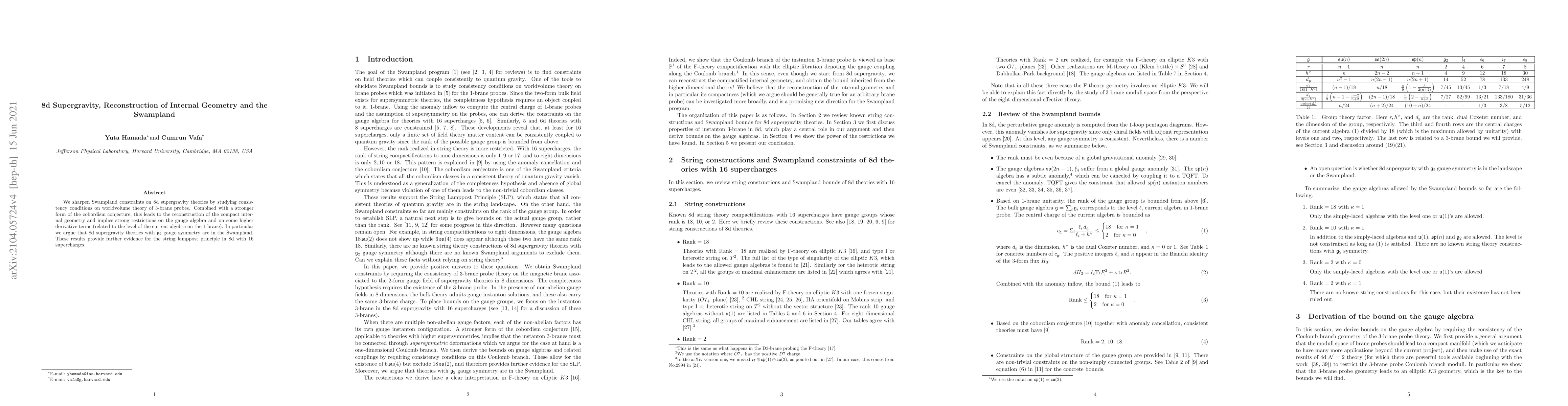 We sharpen Swampland constraints on 8d supergravity theories by studying consistency conditions on worldvolume theory of 3-brane probes. Combined with a stronger form of the cobordism conjecture, this leads to the reconstruction of the compact internal geometry and implies strong restrictions on the gauge algebra and on some higher derivative terms (related to the level of the current algebra on the 1-brane). In particular we argue that 8d supergravity theories with $\mathfrak{g}_2$ gauge symmetry are in the Swampland. These results provide further evidence for the string lamppost principle in 8d with 16 supercharges.