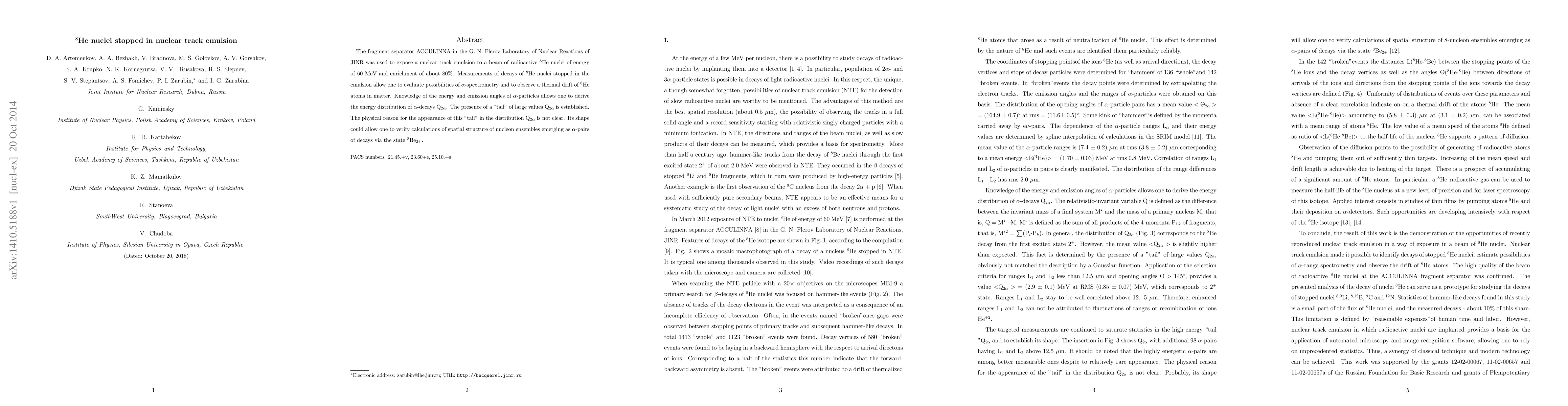 Researchers exposed $^{8}$He nuclei to a nuclear track emulsion to measure decays and observe thermal drift, shedding light on $eta$-spectrometry possibilities and the energy distribution of $eta$-decays. The study also reveals an unknown 'tail' in the decay spectrum.