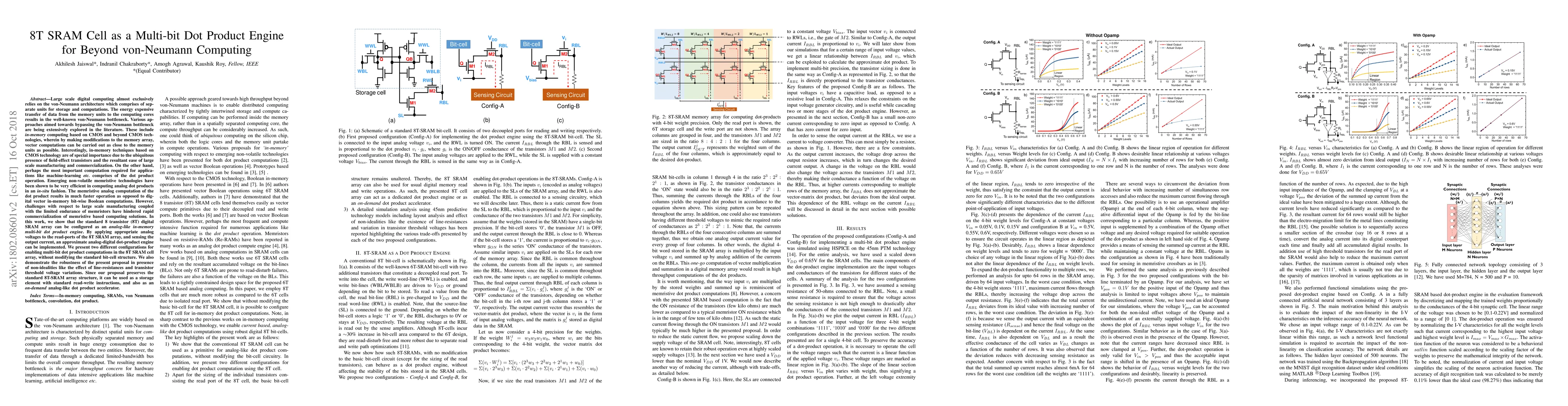 This paper proposes configuring an 8T SRAM array to function as an in-memory multi-bit dot product engine, bypassing the von-Neumann bottleneck. It demonstrates two configurations for enabling analog-like dot product computations without altering the standard SRAM structure, thus maintaining its dual functionality as both storage and computation.