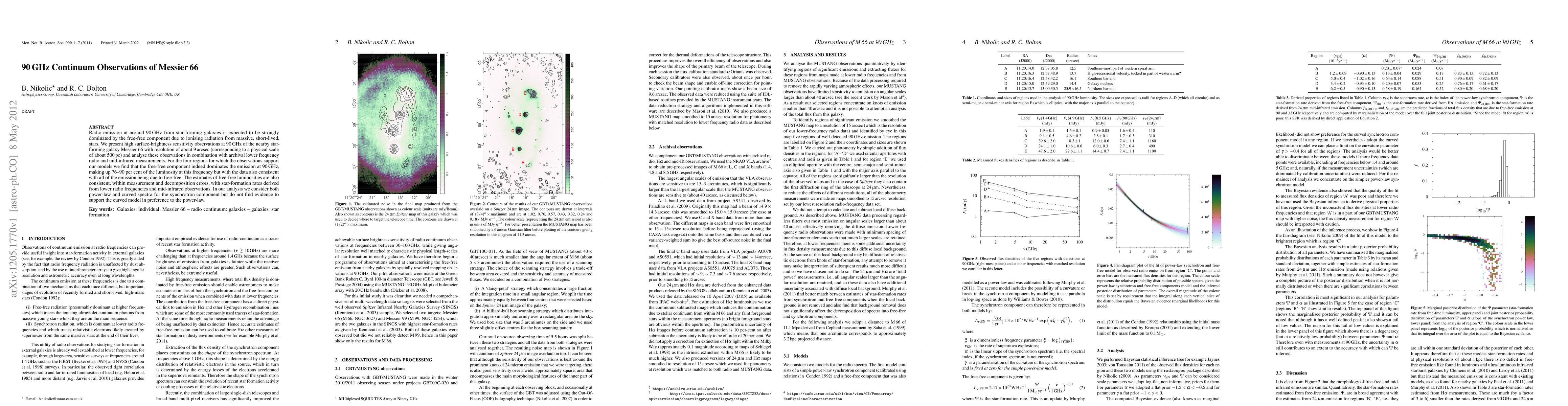 Researchers observed Messier 66 at 90 GHz and found that free-free radiation from stars dominates emission, making up 76-90% of luminosity. The findings support star-formation rates derived from lower radio frequencies and mid-infrared observations.
