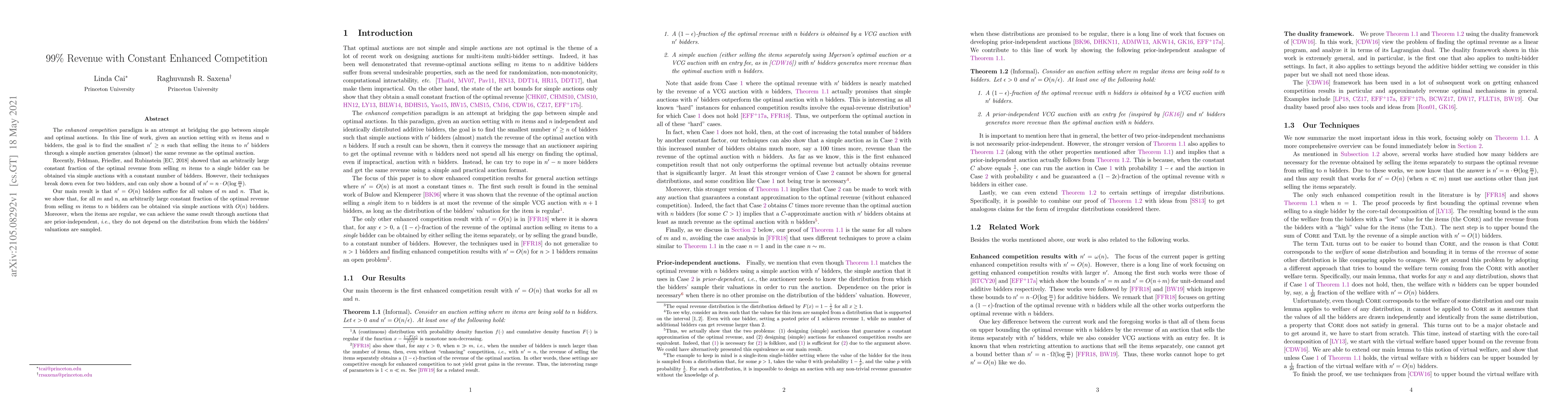 The enhanced competition paradigm is an attempt at bridging the gap between simple and optimal auctions. In this line of work, given an auction setting with $m$ items and $n$ bidders, the goal is to find the smallest $n' \geq n$ such that selling the items to $n'$ bidders through a simple auction generates (almost) the same revenue as the optimal auction. Recently, Feldman, Friedler, and Rubinstein [EC, 2018] showed that an arbitrarily large constant fraction of the optimal revenue from selling $m$ items to a single bidder can be obtained via simple auctions with a constant number of bidders. However, their techniques break down even for two bidders, and can only show a bound of $n' = n \cdot O(\log \frac{m}{n})$. Our main result is that $n' = O(n)$ bidders suffice for all values of $m$ and $n$. That is, we show that, for all $m$ and $n$, an arbitrarily large constant fraction of the optimal revenue from selling $m$ items to $n$ bidders can be obtained via simple auctions with $O(n)$ bidders. Moreover, when the items are regular, we can achieve the same result through auctions that are prior-independent, {\em i.e.}, they do not depend on the distribution from which the bidders' valuations are sampled.