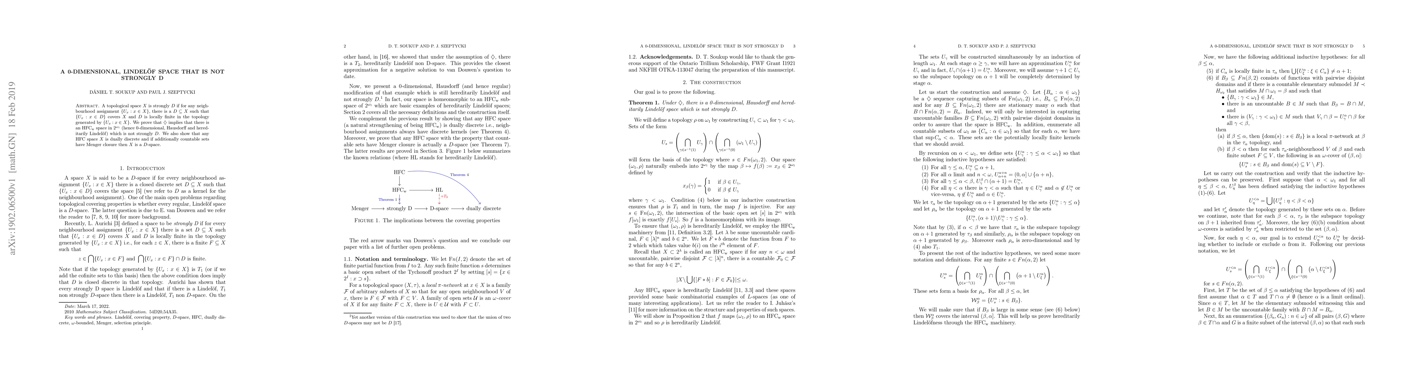 This paper proves that under the assumption $\diamondsuit$, there exists a 0-dimensional, Hausdorff, and hereditarily Lindelöf (HFC_w) space in $2^{\omega_1}$ that is not strongly $D$. It also demonstrates that any $HFC$ space is dually discrete and if countable sets have Menger closure, then such a space is a $D$-space.