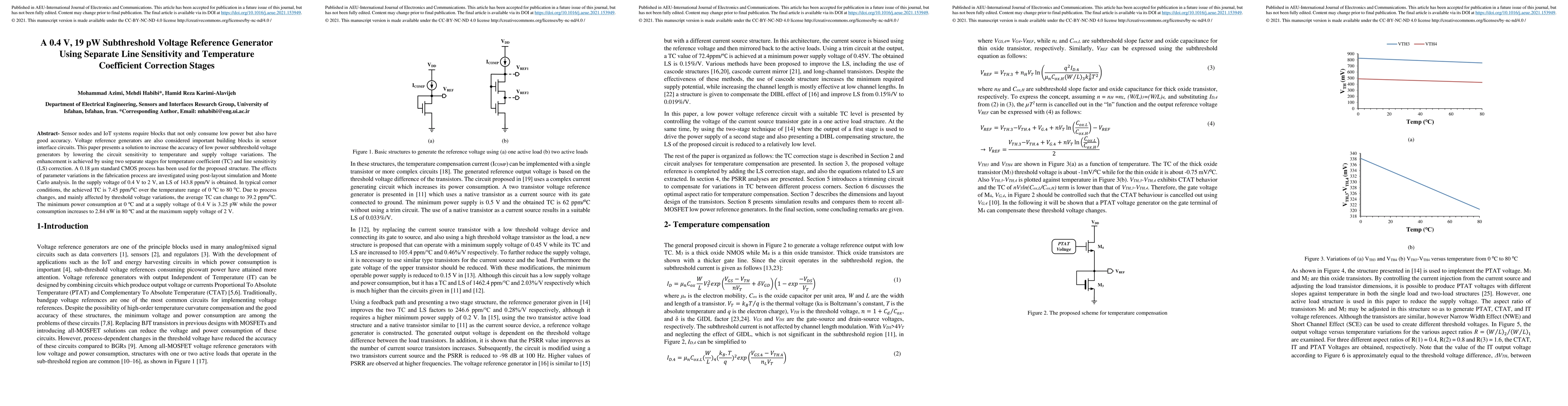 Sensor nodes and IoT systems require blocks that not only consume low power but also have good accuracy. Voltage reference generators are also considered important building blocks in sensor interface circuits. This paper presents a solution to increase the accuracy of low power subthreshold voltage generators by lowering the circuit sensitivity to temperature and supply voltage variations. The enhancement is achieved by using two separate stages for temperature coefficient (TC) and line sensitivity (LS) correction. A 0.18 {\mu}m standard CMOS process has been used for the proposed structure. The effects of parameter variations in the fabrication process are investigated using post-layout simulation and Monte Carlo analysis. In the supply voltage of 0.4 V to 2 V, an LS of 143.8 ppm/V is obtained. In typical corner conditions, the achieved TC is 7.45 ppm/{\circ}C over the temperature range of 0{\circ}C to 80{\circ}C. Due to process changes, and mainly affected by threshold voltage variations, the average TC can change to 39.2 ppm/{\circ}C. The minimum power consumption at 0{\circ}C and at a supply voltage of 0.4 V is 3.25 pW while the power consumption increases to 2.84 nW in 80{\circ}C and at the maximum supply voltage of 2 V.
