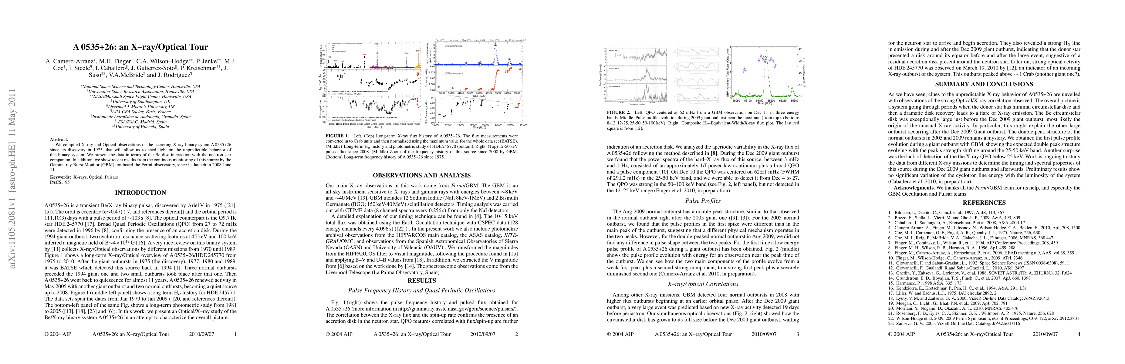 We compiled X-ray and Optical observations of the accreting X-ray binary system A 0535+262 since its discovery in 1975, that will allow us to shed light on the unpredictable behavior of this binary system. We present the data in terms of the Be-disk interaction with the neutron star companion. In addition, we show recent results from the continuous monitoring of this source by the Gamma-ray Burst Monitor(GBM), on board the Fermi observatory, since its launch in 2008 June 11.