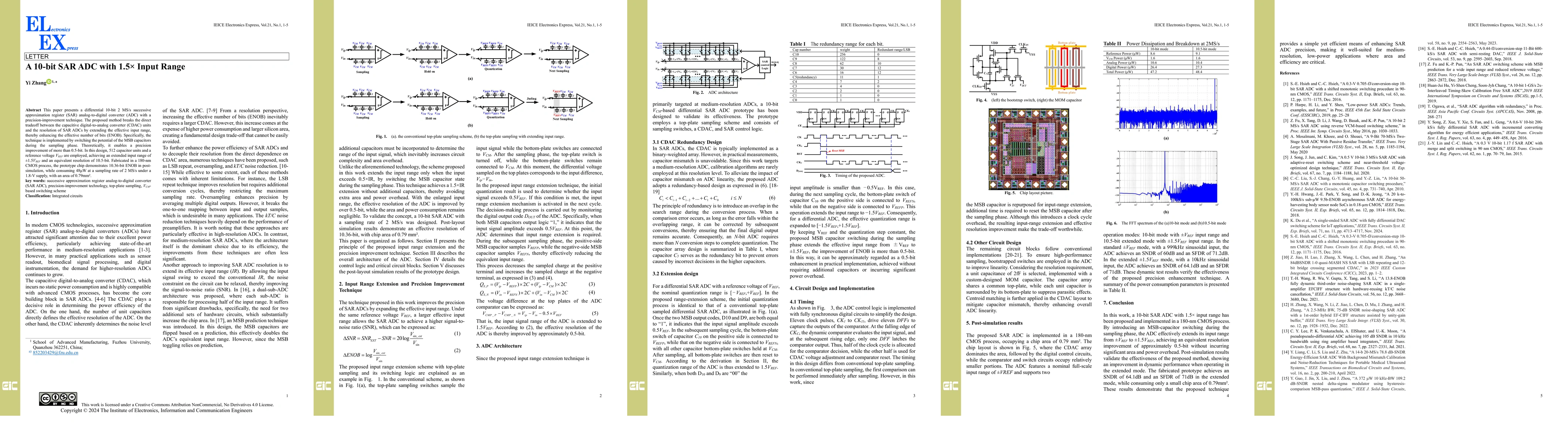 This paper presents a differential 10-bit 2 MS/s successive approximation register (SAR) analog-to-digital converter (ADC) with a precision-improvement technique. The proposed method breaks the direct tradeoff between the capacitive digital-to-analog converter (CDAC) units and the resolution of SAR ADCs by extending the effective input range, thereby enhancing the effective number of bits (ENOB). Specifically, the technique is implemented by switching the potential of the MSB capacitors during the sampling phase. Theoretically, it enables a precision improvement of more than 0.5-bit. In this design, 512 capacitor units and a reference voltage VREF are employed, achieving an extended input range of +-1.5VREF and an equivalent resolution of 10.5-bit. Fabricated in a 180-nm CMOS process, the prototype chip demonstrates 10.36-bit ENOB in post-simulation, while consuming 48{\mu}W at a sampling rate of 2 MS/s under a 1.8-V supply, with an area of 0.79mm2.