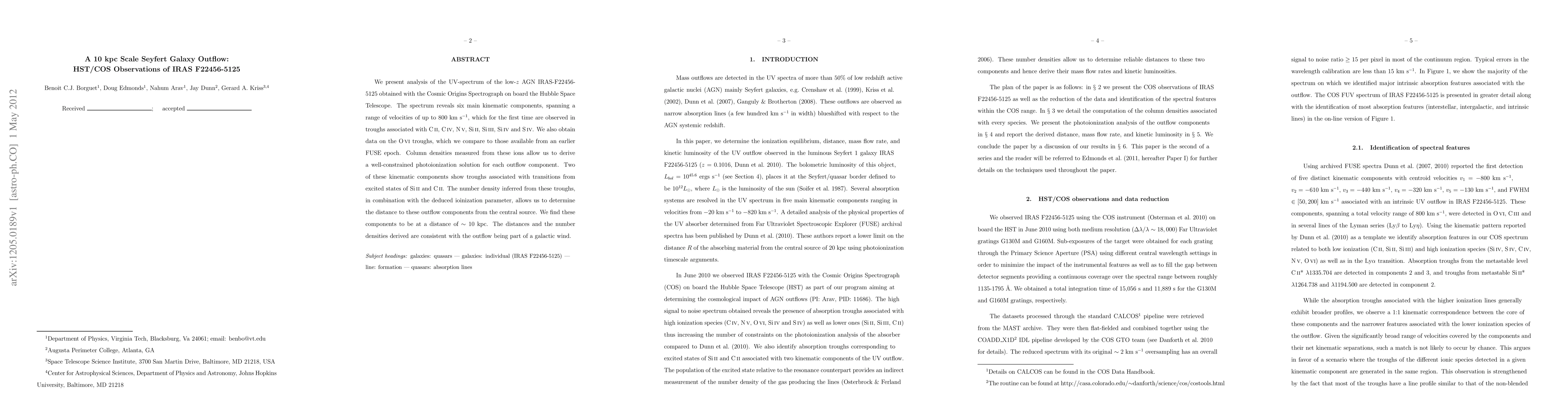 We present analysis of the UV-spectrum of the low-z AGN IRAS-F22456-5125 obtained with the Cosmic Origins Spectrograph on board the Hubble Space Telescope. The spectrum reveals six main kinematic components, spanning a range of velocities of up to 800 km s-1, which for the first time are observed in troughs associated with CII, CIV, NV, SiII, SiIII, SiIV and SIV. We also obtain data on the OVI troughs, which we compare to those available from an earlier FUSE epoch. Column densities measured from these ions allow us to derive a well-constrained photoionization solution for each outflow component. Two of these kinematic components show troughs associated with transitions from excited states of SiII\ and CII. The number density inferred from these troughs, in combination with the deduced ioinization parameter, allows us to determine the distance to these outflow components from the central source. We find these components to be at a distance of ~ 10 kpc. The distances and the number densities derived are consistent with the outflow being part of a galactic wind.