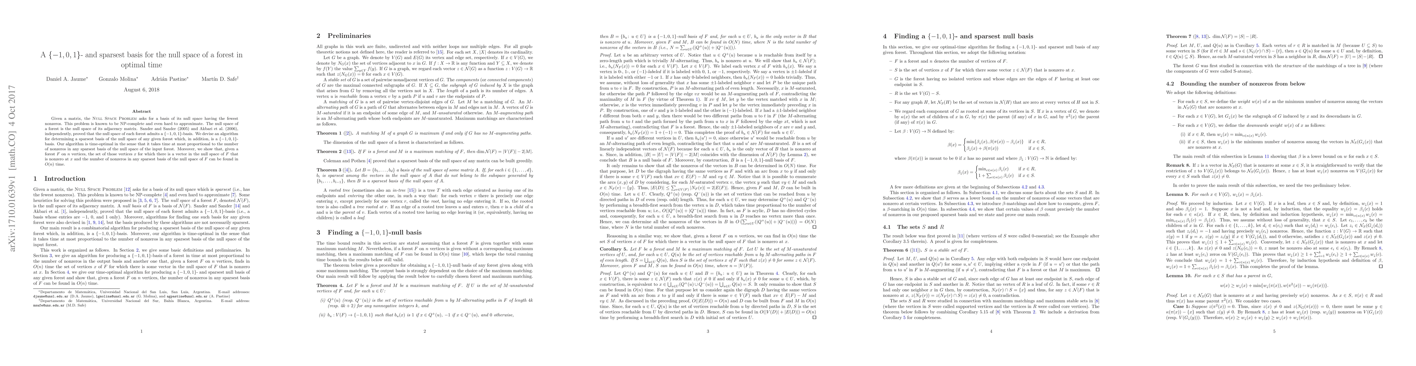 This paper presents an algorithm to find the sparsest $\{-1,0,1\}$-basis for the null space of a forest's adjacency matrix, achieving optimal time complexity proportional to the number of nonzeros in the sparsest basis. Additionally, it determines the vertices with nonzero vectors in the null space in linear time.