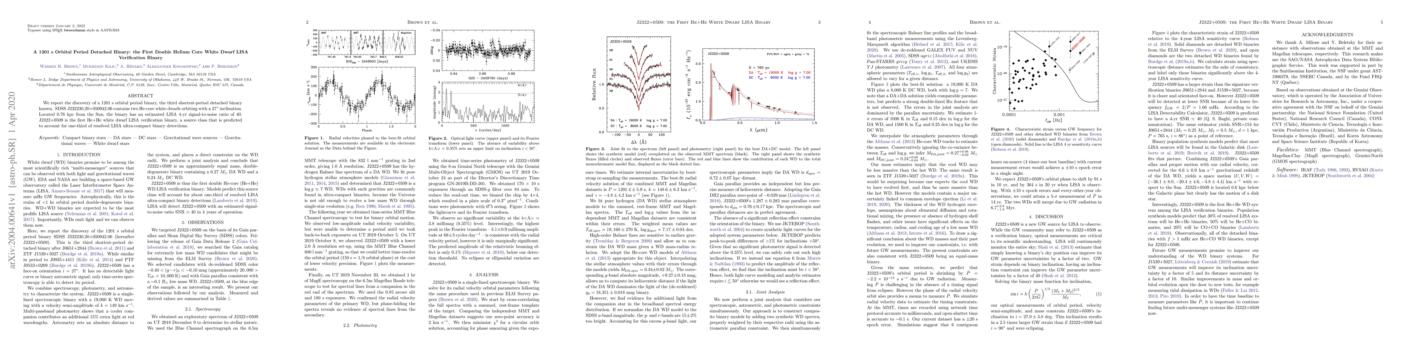 We report the discovery of a 1201 s orbital period binary, the third shortest-period detached binary known. SDSS J232230.20+050942.06 contains two He-core white dwarfs orbiting with a 27 deg inclination. Located 0.76 kpc from the Sun, the binary has an estimated LISA 4-yr signal-to-noise ratio of 40. J2322+0509 is the first He+He white dwarf LISA verification binary, a source class that is predicted to account for one-third of resolved LISA ultra-compact binary detections.