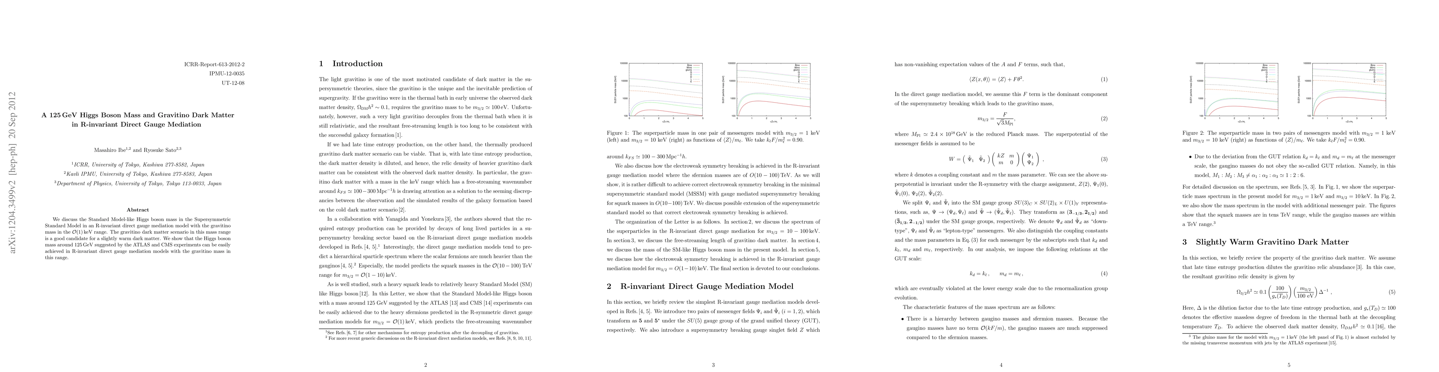 This paper explores an R-invariant direct gauge mediation model in the MSSM, demonstrating how it can achieve a 125 GeV SM-like Higgs boson mass, as observed by the ATLAS and CMS experiments, while gravitinos in the O(1) keV range serve as a viable candidate for slightly warm dark matter.