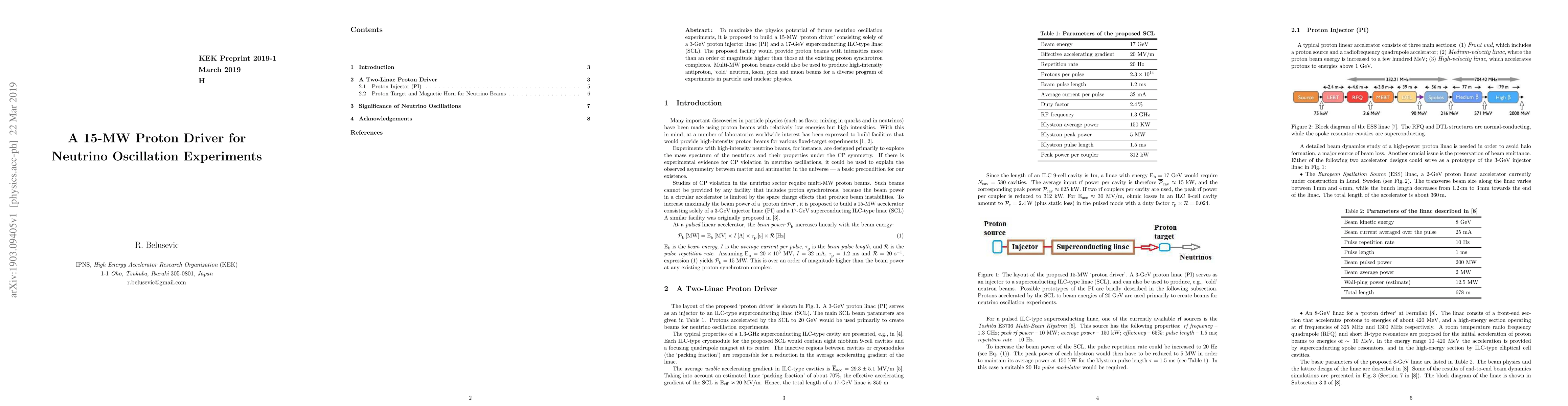 This paper proposes a 15-MW proton driver for enhancing neutrino oscillation experiments, featuring a 3-GeV proton injector linac and a 17-GeV superconducting linac, aiming to provide significantly higher proton beam intensities than current facilities. The facility could also generate high-intensity beams of antiprotons, neutrons, kaons, pions, and muons for various particle and nuclear physics experiments.
