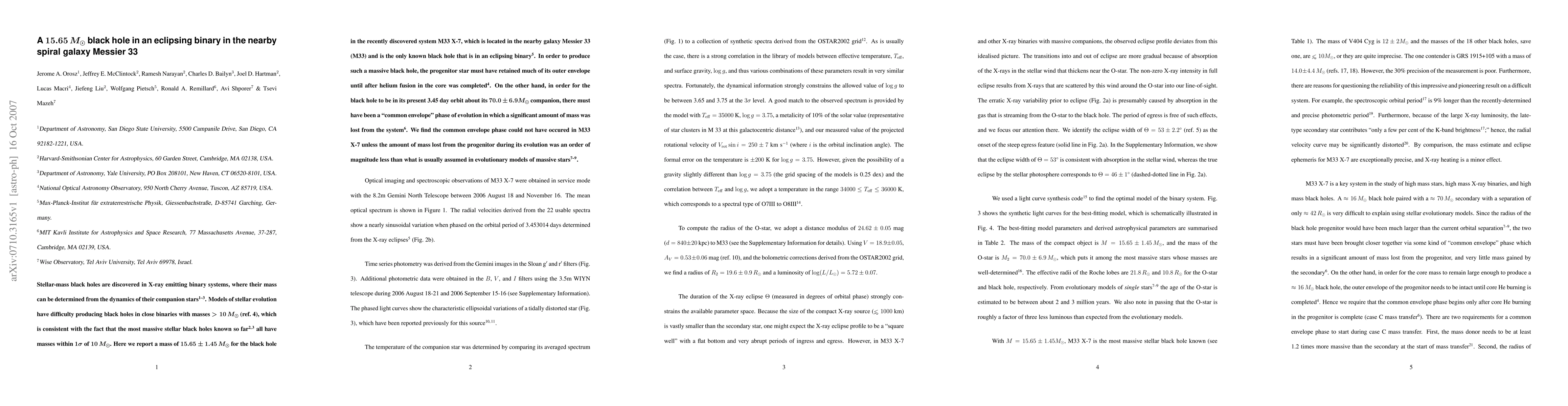 Astronomers have discovered a 15.65 solar mass black hole in an eclipsing binary system in the galaxy Messier 33, which challenges current models of stellar evolution.