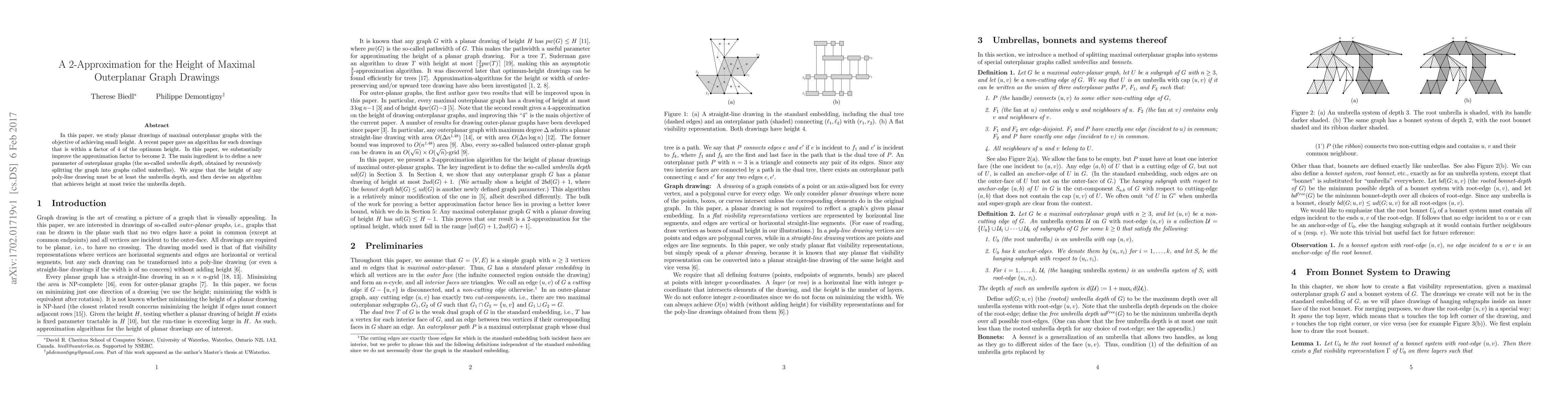 This paper presents a 2-approximation algorithm for minimizing the height of planar drawings of maximal outerplanar graphs, improving upon a previous 4-approximation. The key innovation is the introduction of "umbrella depth," a new parameter that helps to bound the minimum height, leading to the improved algorithm.