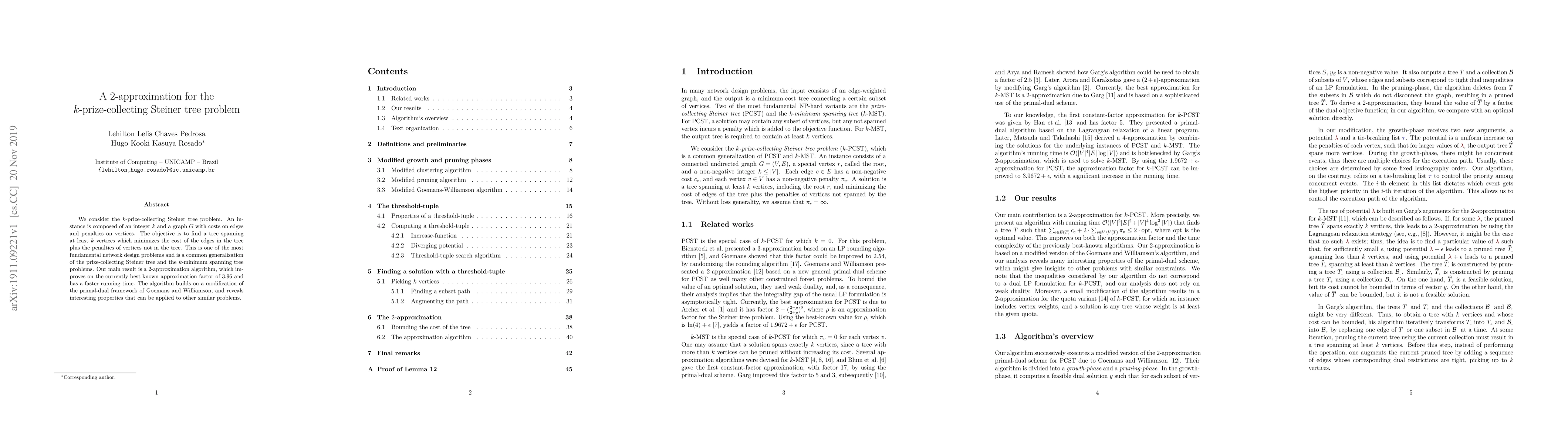 The paper presents a 2-approximation algorithm for the $k$-prize-collecting Steiner tree problem, improving upon the previous best approximation factor of 3.96 and featuring a faster runtime. The algorithm leverages a modified primal-dual approach and shows potential applications to other related network design problems.