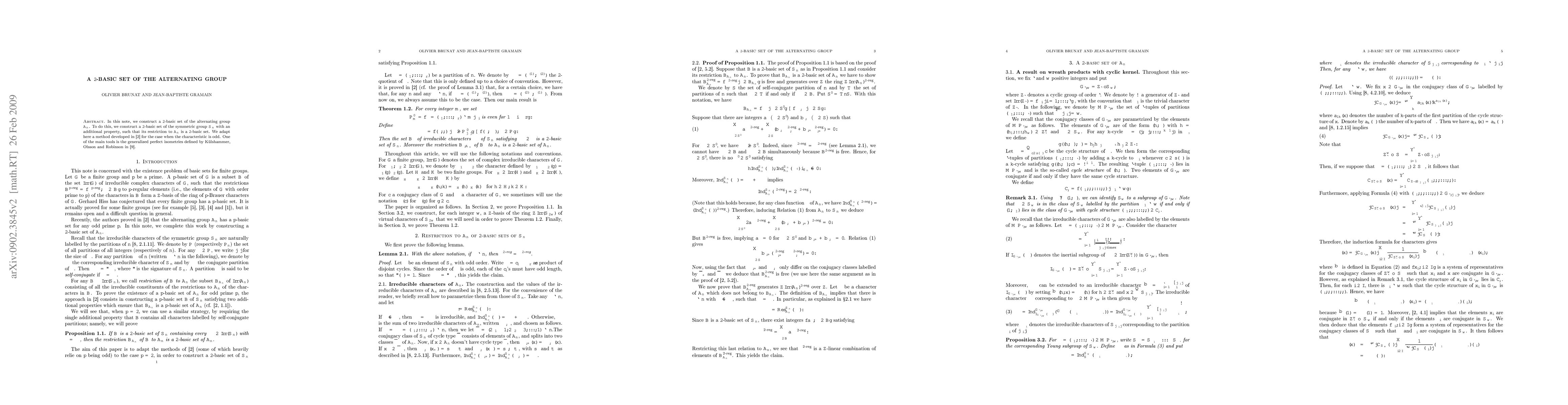 In this note, we construct a 2-basic set of the alternating group \A_n. To do this, we construct a 2-basic set of the symmetric group \sym_n with an additional property, such that its restriction to \A_n is a 2-basic set. We adapt here a method developed in \cite{BrGr} for the case when the characteristic is odd. One of the main tools is the generalized perfect isometries defined by K\"ulshammer, Olsson and Robinson in \cite{KOR}.